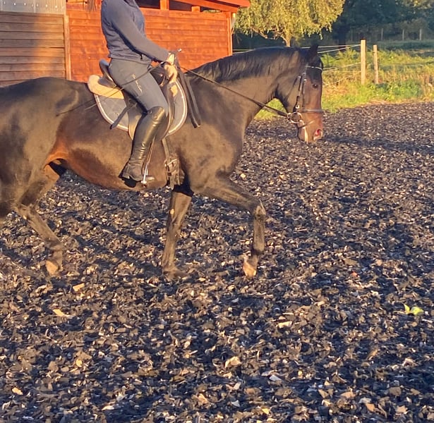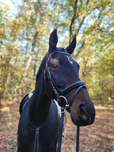 For sale is our lovely mare Frida, a reliable partner for both competition and leisure riding. Frida has been placed multiple times and has achieved wins in dressage tests at levels E and A, consistently demonstrating her skills reliably during competitions. She is ideally suited for ambitious recreational riders with dressage aspirations and also makes a dependable companion in the field or at the competition arena. Character-wise, Frida impresses with her calm, curious nature. She enjoys learning new things, is versatile, and always strives to please her handler. She is very pleasant to handle: friendly with children, suitable for beginners, and never nasty even in unfamiliar situations. She is safe in the terrain, although she can be somewhat cautious at times, so an experienced rider is preferable for this area. In daily stable life, she is uncomplicated: Frida is farrier- and loading-friendly, regularly introduced to the blacksmith, vaccinated, and free of known pre-existing conditions or injuries. She is accustomed to farm life and noisy environments, having grown up near a highway and being ridden in such surroundings. She enjoys jumping, even though she has not been formally trained in this discipline yet – there is potential for further development here. Frida is a true all-rounder with dressage ambitions, perfect for leisure and competition riders seeking a reliable, friendly mare. If you are genuinely interested, we look forward to hearing from you.