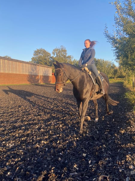 Zum Verkauf steht unsere liebe Stute Frida, eine zuverlässige Partnerin für Turnier und Freizeit. Frida ist in Dressurprüfungen der Klassen E und A mehrfach platziert und siegreich, zeigt dabei auf Turnier stehts zuverlässig ihr Können. Sie eignet sich ideal für ambitionierte Freizeitreiter*innen mit Dressurambitionen und ist gleichzeitig ein verlässlicher Begleiter im Gelände oder auf dem Turnierplatz. Charakterlich überzeugt Frida durch ihre ruhige, neugierige Art. Sie lernt gern Neues, ist vielseitig einsetzbar und immer bemüht, ihrem Menschen zu gefallen. Auch im Umgang ist sie sehr angenehm: kinderfreundlich, anfängergeeignet und selbst in ungewohnten Situationen nie böse. Sie ist geländesicher, auch wenn sie gelegentlich etwas vorsichtig ist, wodurch ein geübter Reiter in diesem Areal besser passt. Im Stallalltag zeigt sie sich unkompliziert: Frida ist Hufschmied- und verladefromm, regelmäßig dem Schmied vorgestellt, geimpft und ohne bekannte Vorerkrankungen oder Verletzungen. Sie ist an das Hofleben sowie an laute Umgebungen gewöhnt, da sie in Nähe einer Autobahn aufgewachsen und beritten ist. Springen bereitet ihr Freude, auch wenn sie in diesem Bereich bisher nicht ausgebildet wurde – hier steckt Potenzial für weitere Förderung. Frida ist ein echter Allrounder mit Dressurambitionen, ideal für Freizeit- und Turnierreiter*innen, die eine zuverlässige, freundliche Stute suchen. Weiterhin im Preis enthalten sind ein Sattel, zwei Schabracken, eine Trense, zwei Halfter + Strick, zwei Abschwitzdecken, zwei Regendecken, eine 100g Decke und eine 300g Decke (alle in verschiedenen Farben zur leichten Identifizierung), voll ausgestatteter Putzkasten, Garmaschen und einigen weiteren Dingen. Bei ernsthaftem Interesse freuen wir uns über Ihre Nachricht. Kleine AKU und einige Röntgenbilder vorhanden.