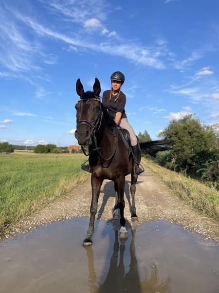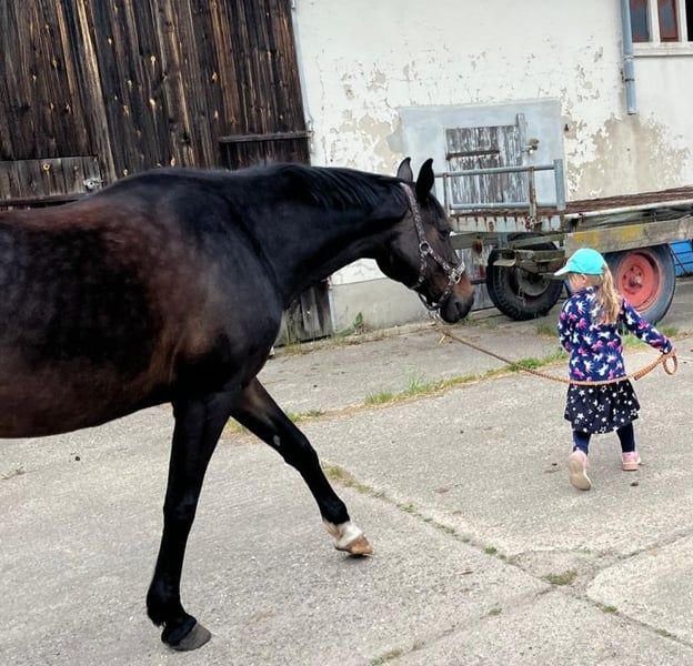 **Verkaufsanzeige: Traumhafte Oldenburger Stute** Zum Verkauf steht eine wunderschöne Oldenburger Stute, geboren im Jahr 2012. Sie ist ein eleganter schwarzbrauner Schatz mit einem Stockmaß von 164 cm und überzeugt durch ihre ansprechende Statur und ihren charmanten Charakter. Diese talentierte Stute ist bestens als Allrounder geeignet und zeigt vielversprechende Leistungen. In der Dressur wurde sie in L-Dressur vorgestellt und im springen A*. Sie verfügt über eine ausgezeichnete Ausbildung und ist sowohl für erfahrene Reiter als auch für ambitionierte Einsteiger geeignet, die ihre Fähigkeiten im Dressur und Springsport weiterentwickeln möchten. Auch im Gelände zeigte sie sich ruhig und gelassen. Sie geht alleine sowie in der Gruppe raus. Die Stute kennt Boxen und auch Offenstallhaltung in der sie sich sehr wohl fühlt. Die Stute ist brav im Umgang, gut erzogen. Sie ist sowohl im Gelände als auch in der Halle gut zu reiten und zeigt stets eine positive Einstellung zur Arbeit. Bei Interesse oder für weitere Informationen melden Sie sich gerne. Lassen Sie sich diese Gelegenheit nicht entgehen, eine so talentierte und liebevolle Stute in Ihr Leben zu holen! Um Reittourismus zu vermeiden ist Probereiten gegen eine Gebühr von 40 Euro möglich und wird bei Vertragsschluss mit dem Kaufpreis verrechnet.