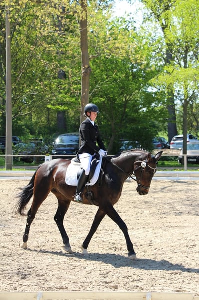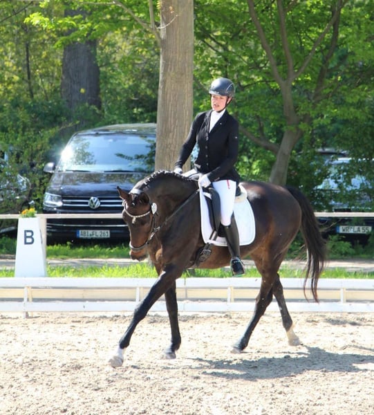 **Sales Advertisement: Dreamy Oldenburg Mare** For sale is a beautiful Oldenburg mare, born in 2012. She is an elegant bay treasure with a height of 164 cm and impresses with her appealing stature and charming character. This talented mare is perfectly suited as an all-rounder and shows promising performance. In dressage, she has been presented in L-level competitions and in show jumping at A*. She has excellent training and is suitable for both experienced riders and ambitious beginners who wish to further develop their skills in dressage and show jumping. She also displayed calmness and composure in the field. She goes out alone as well as in a group. The mare is familiar with both box and pasture housing, where she feels very comfortable. The mare is well-behaved and well-mannered. She is good to ride both in the field and in the arena, always showing a positive attitude towards work. If you are interested or need further information, please feel free to contact us. Don’t miss this opportunity to welcome such a talented and loving mare into your life!