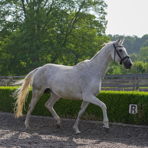 Sensation hat ihren Namen immer gerechtfertigt als eine atemberaubende Stute und hervorragende Bewegerin, abstammend von einer besonderen GP-Stute. Sie hat einige außergewöhnliche Fohlen hervorgebracht, darunter den großartigen Escanto-Hengstfohlen, den sie bei Fuß hat und den wir behalten werden. Daher ist sie nach dem Absetzen verfügbar, kann aber in der Zwischenzeit von Ihrem gewählten Hengst gedeckt werden, wobei die Kosten für Tierarzt und Samen vom Käufer getragen werden müssen. Sensation ist ein freundlicher, aber sensibler Typ in ihrem Charakter, weshalb sie sich nicht für einen großen, geschäftigen Stall oder grobe Handhabung eignet. Sie ist am besten geeignet für einen wissenden und freundlichen kleineren Stall als unseren großen, geschäftigen Stall. Im täglichen Umgang ist sie sehr einfach und völlig unkompliziert in der Herde sowie bei der Geburt und ist eine großartige Mutter. Sie leidet jedoch unter Sommerekzem und hat eine empfindliche Haut, weshalb sie in den Sommermonaten eine entsprechende Pflege benötigt, um Reizungen zu vermeiden, was am besten in einem kleineren Stall möglich ist, als wir es derzeit sind, um ihren Bedürfnissen gerecht zu werden. Im Gegenzug wird sie einige atemberaubende Nachkommen produzieren (keiner von ihnen hat von mehreren verschiedenen Hengsten Juckreiz geerbt).