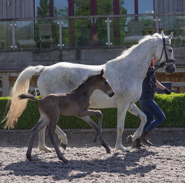 Sensation has always lived up to her name as a stunning model of a mare and superb mover, descending from a special GP mare. She has produced some exceptional foals including the super Escanto colt she has at foot which we will be retaining, so available on weaning but in the meantime can be covered by your choice of stallion, at the buyers expense for the vet & semen costs. Sensation is a kind but sensitive type in her character so wouldn't suit a big busy yard or any rough handling, she is best suited to a knowledgeable and kind smaller stable than our big busy yard. Very easy in day to day handling and totally uncomplicated in a herd and with her foaling, and is a great mum. She does however suffer from sweet itch & is sensitive in her skin, so needs management for this to not become irritated in the summer which would be best suited to a smaller yard than we currently are to do this best for her need. In exchange she will produce some stunning offspring (none of whom have inherited any itching from multiple different sires).