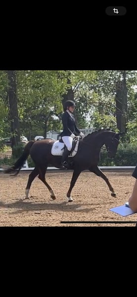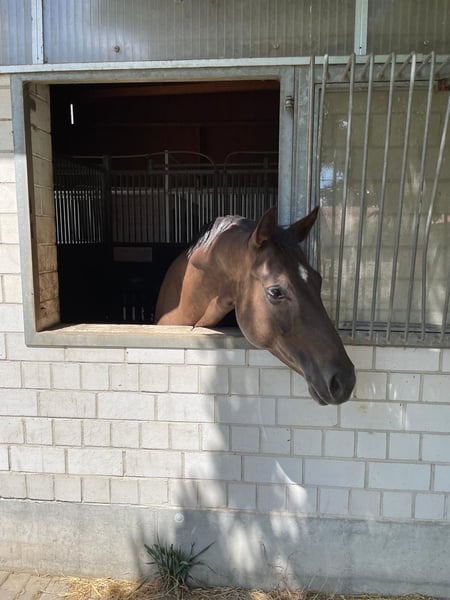 Lilly is a beautiful 14-year-old dark chestnut mare who is very people-oriented and friendly. She is very balanced and up for any fun. Lilly has no vices and is very well-behaved. She is shod in front, is farrier-friendly and loading-friendly, does not buck, and does not rear. In the past, Lilly has achieved many victories and placements up to the M** level. Currently, she is successful in L dressage and is therefore in top shape to ride immediately. She is absolutely reliable in lessons and also jumps series changes reliably. She has also been presented in show jumping up to the A** level at competitions. Additionally, she is a great partner for leisure, with whom you can have fun every day. Lilly does not have a current vet check as she has been in the owner's possession for 11 years and was purchased directly from the breeder back then. To spare Lilly from "riding tourism," we charge a fee of €25 for trial rides. This will, of course, be deducted from the purchase price.