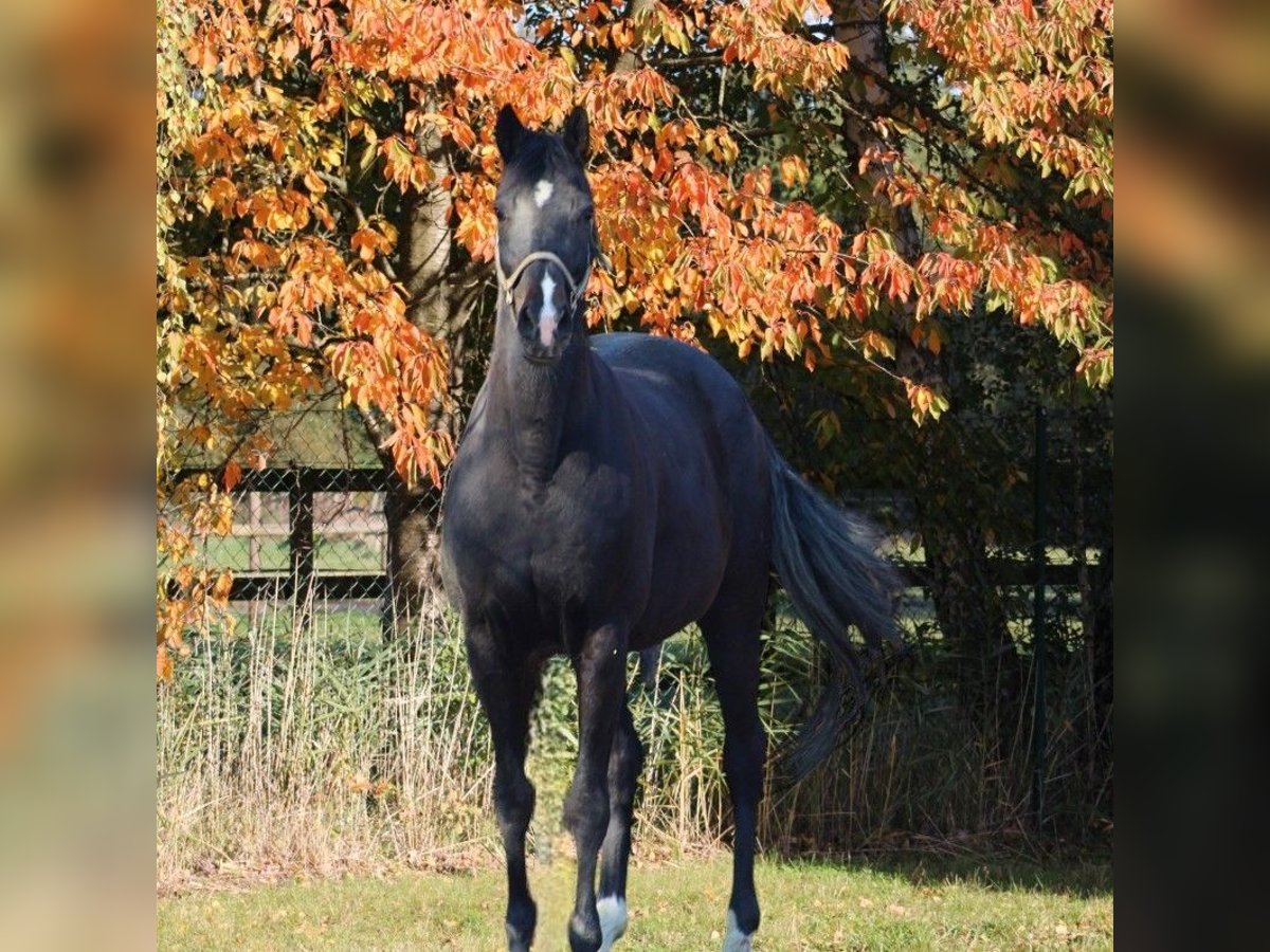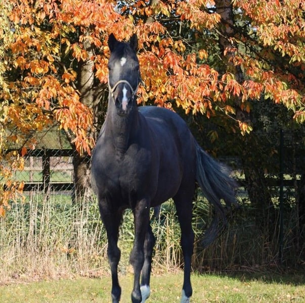 Bildschöne schwarze Oldenburger St.-Pr. Zuchtstute 2011 von Jazzman/Diamond Hit aus Waldhexe Stamm. Weitere 3 Generationen St.-Pr. oder Elitestuten im Pedigree. Mutter ist Vollschwester zu 2 internationalen Grand Prix Pferden, gekörtem Deckhengst, PSG Pferden, weiteren Elitestuten.. Großmutter war Landessiegerstute in Oldenburg bei den Reitpferden und Finale BCH, Hengstmutter usw.. Jazzman war viele Jahre hoch in der Zuchtwertschätzung und daher lange einer der besten Söhne des Starhengstes Jazz. Diamond Hit erfolgreich bis hin zur Olympia Nominierung Stute hat sehr gute SLP mit St.-Pr. abgelegt und war zur Elitestutenschau in Rastede eingeladen. Sie ist ebenfalls Schwester zu weiteren Prämienstuten, Sport erfolgreichen Pferden... Hatte bisher 4 top Fohlen . Für 2026 nicht tragend könnte daher sofort mit Wunschhengst besamt werden. Nimmt immer leicht auf und ist eine sehr liebe Mutter. Auch in der Herde Rang niedrig und unkompliziert und im Umgang unkompliziert. Nur wegen Zuchtaufgabe abzugeben. www.quadriga-pferdehaltung.de