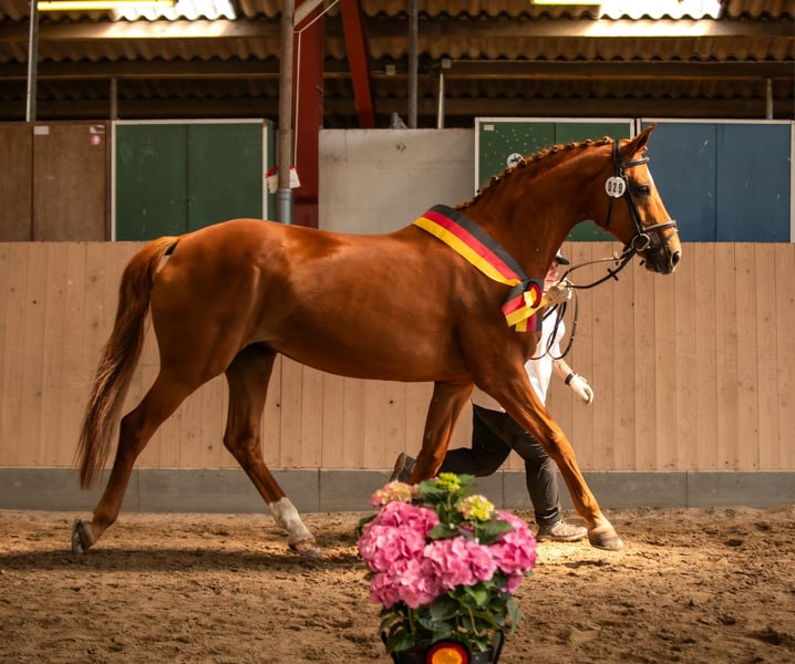 Zum Verkauf steht eine 2009 geborene Oldenburger Verbandsprämienstute (letztes Fohlen 2019). Abstammung: Flavio x Florestan I x Drakdream x Donnerhall Die Stute ist gesund & fit, temperamentvoll , dabei immer brav und gut zu handhaben. Vollständig geimpft, regelmäßig entwurmt und natürlich neben der Osteopathin dem Hufschmied vorgestellt. Sie wurde das letzte Jahr hauptsächlich auf Championaten und im Freilauf vorgestellt, daher müsste sie reiterlich wieder angeschoben werden, was aber bei ihrem aktuellen Trainigszustand (Freilauf, Longe, Cavaletti usw) kein Problem sein sollte. Sie kennt Boxenhaltung, fühlt sich jedoch im Offen/Laufstall wohler, läuft barhuf. Bei Interesse oder weiteren Fragen bitte gerne melden.