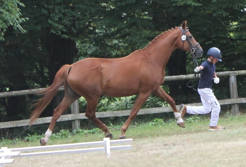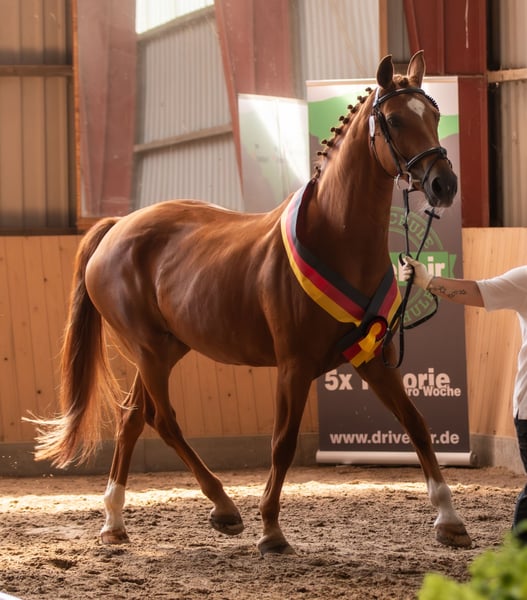 Se ofrece una yegua de la Verbandssiegerin Oldenburg, nacida en 2009 (su último potro fue en 2019). Pedigrí: Flavio x Florestan I x Drakdream x Donnerhall La yegua está sana y en buena forma, es de carácter vivo, pero siempre tranquila y fácil de manejar. Completamente vacunada, desparasitaciones al día y, además, ha sido revisada regularmente por la osteópata y la herrera. El año pasado se presentó principalmente en concursos y en libertad, por lo que sería necesario volver a ponerla en forma bajo la silla, aunque con su estado actual de entrenamiento (trabajo en libertad, en la cuerda, con caballetes, etc.) no debería ser un problema. Conoce el box, aunque se siente más cómoda en paddock o en establo abierto, y anda descalza. Para más información o si está interesado, no dude en contactarnos.
