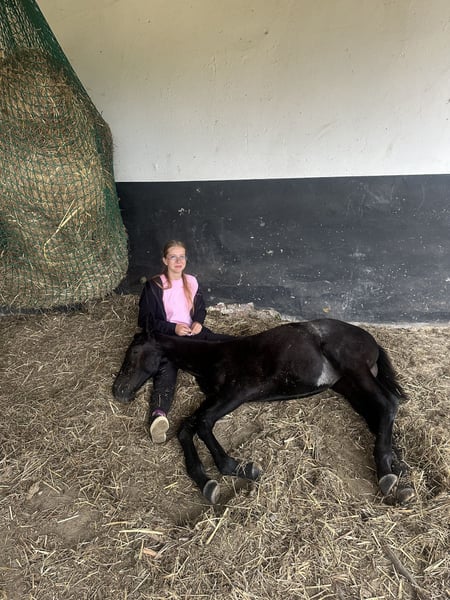Sehr edle, auffällige Stute, die nicht nur durch ihren Typ, sondern auch durch ihre korrekte Anatomie und vor allem durch ihre leichte, elastische Bewegung besticht. My Lady Adventure erzielte hohe Bewertungen beim VI. Offenen Fohlen- und Hengstchampionat der Edlen Rassen in Radzionków. Die Richter lobten ihren modernen, sportlichen Typ, ihre Erscheinung sowie vor allem ihren Trab und Galopp. Dieser Erfolg überrascht nicht, wenn man ihr reichhaltiges Pedigree mit wertvollen Genen betrachtet. Ihre Vorfahren glänzten nicht nur auf Turnierplätzen, sondern auch in internationalen Springhallen. Ihr Vater ist der Oldenburger ESCANTO PS – Deutscher Meister der 4-jährigen Reitpferde, zweifacher Champion des Hengsttests und Gewinner der Hauptprämie beim Körungsturnier. Er trägt die Gene des herausragenden Vererbers Escamillo, dem er sehr ähnlich ist, und gibt diese Eigenschaften stark an seine Nachkommen weiter – eine wunderschöne, harmonische Konformation und nahezu perfekte Proportionen für den Dressurviereck. Escanto ist ein wahrer Athlet mit expressiver Kraft und Tüchtigkeit, beständigem Rhythmus in den Gangarten sowie natürlicher Fähigkeit zur Selbsthaltung. Ebenso wertvoll ist die weibliche Seite ihres Pedigrees. Ihre vierte Mutter, Gardenia, startete im Springen bis zur Klasse CC1 und nahm an den polnischen Meisterschaften der Senioren teil. Sie ist Halbschwester zu Springpferden wie Garnizon (anerkanntes Hengst, bis 140 cm), Gandia, die erfolgreich bis 145 cm sprang, sowie einem weiteren lizenzierten Hengst, Grom, der eine Karriere im Springen bis 130 cm vorweisen kann. My Lady Adventure stammt aus einer wertvollen Familie der Stute Georgia uszl.x (nach Bezimienny brdbg), die vor allem in der Zuchtstation Moszna, später auch in SK Prudnik, aufgewachsen ist. Viele ihrer Nachkommen haben auf Springturnieren Erfolge erzielt, darunter Gino (Klasse CC3), Gitta (MPMK-B), Grog (130 cm), Goldmara (145 cm), Goster (130 cm), Gardes G (140 cm), Gig (150 cm), Gayall (135 cm). Nicht zu vergessen ist das phänomenale, epochale Rennpferd Galerius (nach Jape xx), das 39 Rennen bestritt, 30 davon gewann (!), zweimal Zweiter und zweimal Dritter wurde. Insgesamt erzielte es Preisgelder in Höhe von 120.356 zł. In dieser Familie wurden auch Vielseitigkeitspferde wie Gio Candio, Sieger der MPMK-C bei den 4-Jährigen, Green Light M, Garda (CCI*) und Graal (nach CNC*) gezogen, ebenso zahlreiche lizensierte Hengste: Grog, Gig, Gastin, Gorset, Gregory, Gayall, Grom und Gladiolus M. Der Hengst der Mutter ist der silbergraue Hickstetstakkato, ein Sohn des bekannten Hengstes Hickstead White, eines 155 cm großen Pferdes, das u.a. die Große Runde in Wiener Neustadt/AUT, Lichtenvoorde/NED sowie das Grand Prix (150 cm) in Linz-Ebelsberg/AUT gewann. Die Stute ist sehr freundlich, geht gerne auf Menschen zu. Sie ist an das Handling gewöhnt: Beine heben, Putzen, Satteln, Trense anlegen und Longieren. Sie ist mit dem Schmied vertraut. Im Sommer steht sie in einem Freilaufstall mit Unterstand, kann aber auch problemlos im Stall gehalten werden. Sie ist bereits entwöhnt und bereit zur Abholung. Link zum Video auf Instagram https://www.instagram.com/reel/DObWkqVjOtw/?igsh=MW1qOXlqa3VyanYxbg== Zweites Video https://www.instagram.com/reel/DOmJROPDPQ5/?igsh=aDB5cjRzdHM1OG42 Video und Bewertung zur Oldenburger Prämierung https://www.instagram.com/reel/DOmKk_sDCVe/?igsh=dGpsZzZkOXg0OGNx