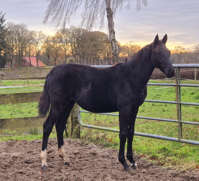 *** Feldfeeling *** For Sale! Mit Feldfeeling präsentiert sich eine bewegungsstarke Tochter des Vizebundeschampions Endorphin aus einer Sir Gregory x Pik Noir x Noble Roi xx Mutter. Die Fotos sind aktuell vom 1.12.25. Sie entstammt dem leganären Feldgoldstamm! Ausgestattet mit sehr guten GGA, entwickelt sich hier eine hochinteressante Offerte für Sport und Zucht. Ein Tausch gegen eine interessante tragende Zuchtstute (Dressur) bis 10 Jahre wäre ebenfalls vorstellbar. Besichtigung jederzeit nach Terminabsprache möglich.