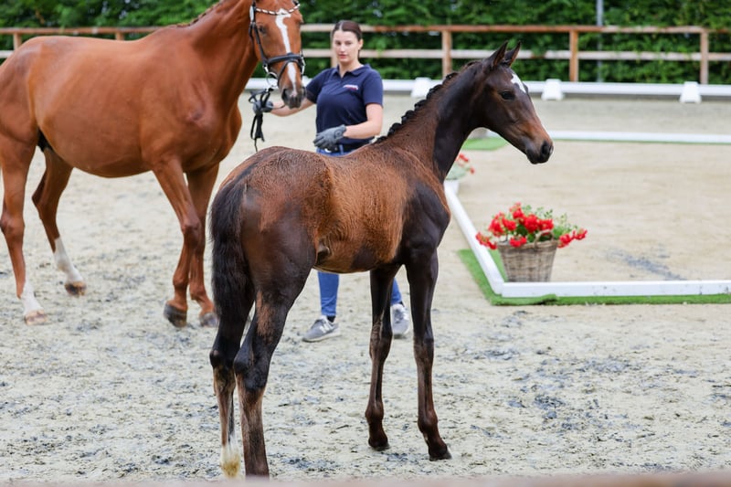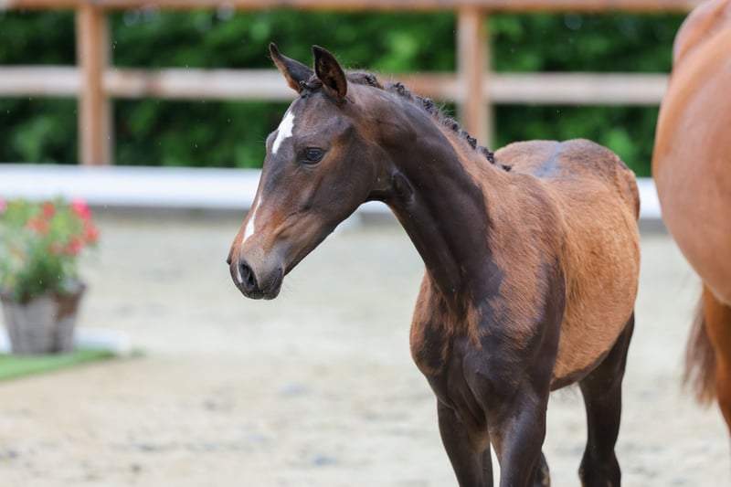 Elegant Oldenburg Filly for Sale We are offering a beautiful Oldenburg filly, born in 2025. She impresses with her dark coat and distinctive markings. She comes from a line with an impressive height potential, with an estimated final height of around 17.4 hh. The mare is ideally suited for dressage and demonstrates considerable talent, supported by a promising dam line. She is healthy, well-mannered, and has a friendly temperament. Perfect for ambitious riders seeking a reliable partner for the dressage arena. Successful offspring from this line have achieved sale prices of up to €700,000. Please feel free to contact me for more information! I am happy to provide further details and arrange a viewing upon request.