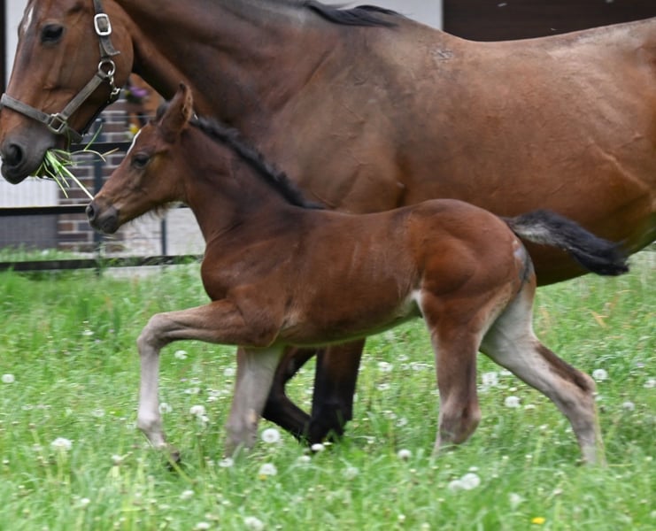 Pouliche puissante avec de très bonnes GGA malgré une ascendance de saut. Lieu Emstek ! Informations sur la lignée maternelle : Oldenburger Stamm 189 mère classée en S et jument élite OS. Grand-mère jument élite OL. Frères et sœurs de la mère couronnés de succès jusqu'en GP et S internationaux.