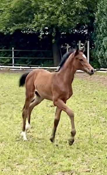 Eine Tochter des Bon Esprit, die keine Wünsche offen lässt. Gute, raumgreifende Gänge, aktives Hinterbein und ein Charakter aus Gold! Eine tolle Jährlingsstute aus kleiner liebevoller Hobbyzucht. Sie ist sehr gelehrig und im Umgang ein absoluter Schatz. Die Mutter ist Leistungsstute FN und war selbst erfolgreich bis M**.