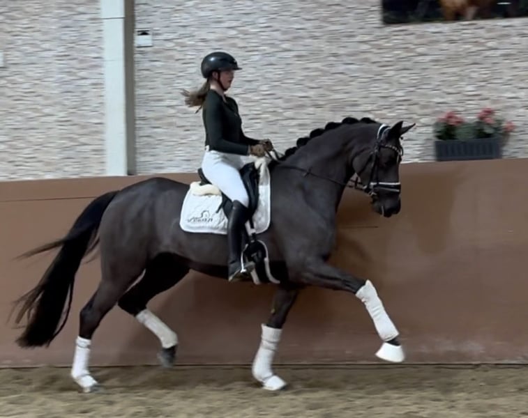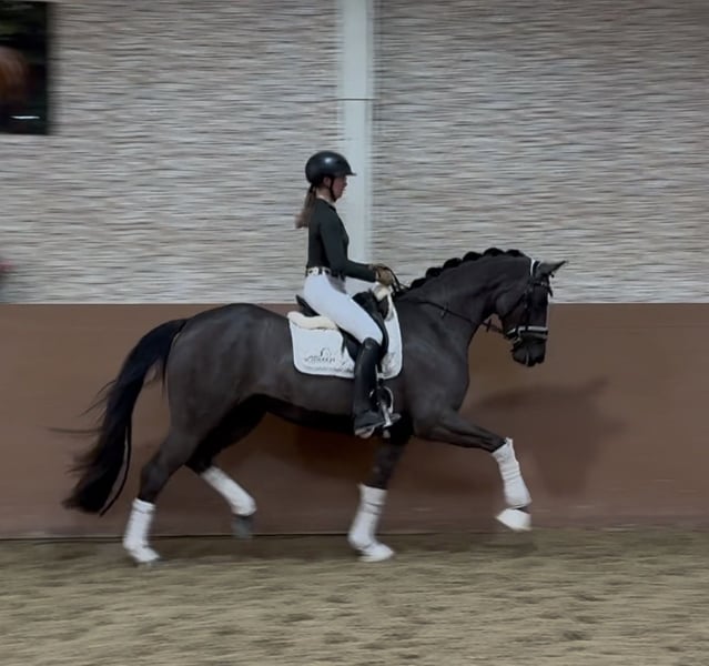 Liebe Interessenten, Für Terminvereinbarungen Probereiten senden Sie mir bitte eine WhatsApp. Für weitere Fragen bin ich tagsüber per WhatsApp erreichbar, telefonisch erreichen Sie mich am Besten zwischen 16 und 19 Uhr. Ich freue mich auf eine Kontaktaufnahme www.angelina-devittorio.de ⭐️Miss Belinda⭐️ Alter: 3,5 Jahre (2022) Größe: aktuell ca 1,59 m voll im Wachstum Abstammung: McLaren x Borsalino Ausbildungsstand: Gerade angeritten AKU: Gute Röntgenbilder vorhanden Zum Verkauf steht Belinda, eine hochveranlagte bildschöne Stute, direkt vom Aufzüchter und durfte in einer pferdegerechten, optimal betreuten Herde aufwachsen . Sie wurde vor vier Wochen behutsam anlongiert und anschließend gemeinsam mit einem 16-jährigen Mädchen ruhig und solide angeritten. Belinda wurde bisher erst wenige Male geritten, zeigt sich total unerschrockenund ist aktuell noch ohne Eisen. Sie überzeugt durch eine außergewöhnliche Grundqualität mit einer besonders aktiven Hinterhand. Hier reift ein Nachwuchspferd besonderer Güte heran . Ihr Charakter ist außergewöhnlich: unerschrocken, aufmerksam und immer bemüht, alles richtig zu machen. Das Video zeigt sie beim vierten Mal frei reiten ohne Longe, wobei ihr Talent und ihre Rittigkeit deutlich zu erkennen sind. Kleine Ausritte hat sie bereits mit absoluter Gelassenheit gemeistert. Aktuell misst sie 1,58 m, ist jedoch noch deutlich überbaut; das Endmaß wird auf etwa 1,62–1,63 m geschätzt liegen. Die Reiterin im Video ist 1,73 m groß, wodurch gut sichtbar wird, dass Belinda hervorragend abdeckt. ⚜️Tel: 0171-3438949 ⚜️a.devittorio@web.de ⚜️https://www.ehorses.de/angelinadevittorio Facebook und Instagram Angelina De Vittorio