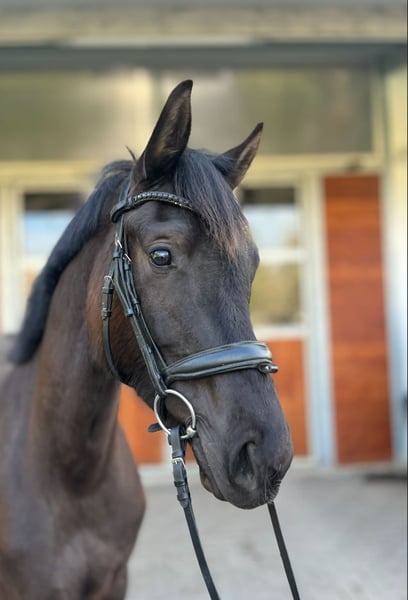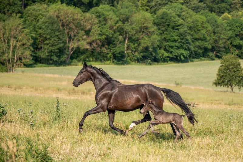 Die im Juli 2023 geborene Rappstute Simsalinde (erwartetes Endmaß ca. 164 cm) vereint Eleganz, Qualität und einen Charakter, der ihresgleichen sucht. Sie überzeugt durch ihre natürliche Präsenz, ihre hervorragende Aufzucht in Züchterhand und eine Abstammung, die keine Wünsche offenlässt: Next Level x Franziskus x Amperé x Spielberg x Dream of Glory – Blutlinien, die für höchste Rittigkeit und sportliche Perspektive stehen (keine Angst vor Franziskusblut!!!). Ihr Exterieur besticht durch eine edle Silhouette mit einer schön angelegten Schulter, die Bewegungen von Ausdruck und Leichtigkeit verspricht. Besonders im Trab offenbart sie eine bemerkenswerte Kniemechanik. Charakterlich ist Simsalinde eine kluge, aufgeschlossene und stets freundliche Partnerin. Sie kennt Spaziergänge allein wie auch als Handpferd im Gelände, ist bestens sozialisiert in der Herde und zeigte sich bislang stets gesund und robust. Die Mutter- und Großmutter war von mir selbst geritten – beide Stuten zeichneten sich durch ihre außerordentliche Rittigkeit und Wohlwollen gegenüber dem Reiter aus. Eine kleine A-Symmetrie am Kopf ist vorhanden und wird selbstverständlich im Preis reflektiert – sie mindert jedoch nicht den Wert dieser außergewöhnlichen jungen Dame. Simsalinde war nie krank und möchte in ihrem Alter nun an neue Aufgaben herangerührt werden. Ideal für Ponyumsteiger und/oder kleine, zierliche Reiter/innen. Simsalinde sollte für den Eigenbedarf bleiben. Der Verkauf erfolgt nur aufgrund von Todesfall meines Partners und dem daraus resultierenden Umständen. Zeitnaher Verkauf erwünscht - aber ein artgerechtes Zuhause ist die oberste Prio!