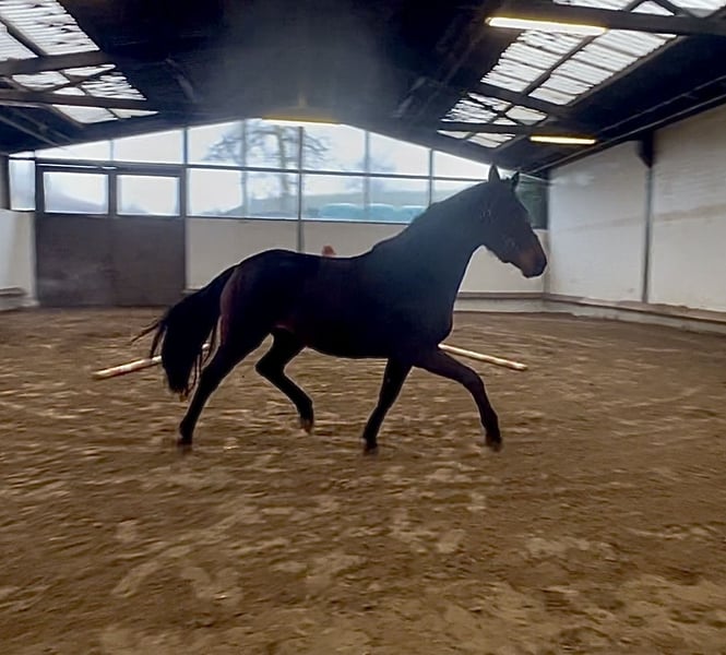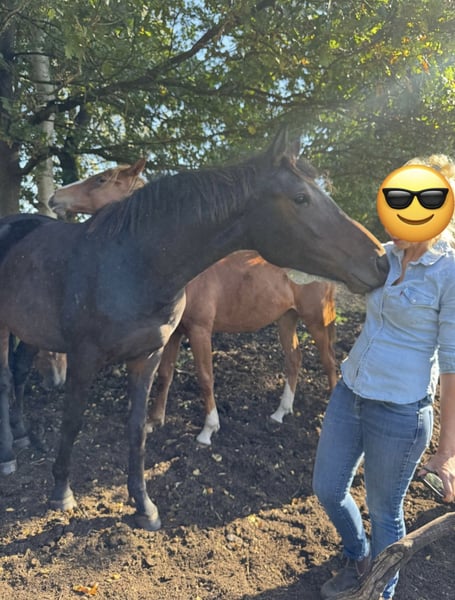 Yegua extremadamente tipificada y hermosa de sangre, de la línea For Kingdom-Quaterback - Donnerhall, en venta. La madre y la abuela han sido montadas ellas mismas y son aptas para amateurs. El padre, For Kingdom, fue ganador en las pruebas deportivas en 2022 y 2023 (9,05!) en Verden, con notas máximas (juzgamiento 9,8), y ya en 2025 ha sido colocado en la categoría S. La madre de For Kingdom, Woodlander Dornröschen (que compite con éxito en Gran Premio), es madre de la doble campeona mundial Woodlander Farouche. El padre de For Kingdom, For Emotion, ocupa en 2025 el primer puesto entre los sementales según el valor genético en las pruebas de potros jóvenes. Los logros de Quaterback, Donnerhall y sus descendientes son ampliamente conocidos. La yegua presenta una activa extremidad posterior y tres excelentes aires básicos. La madre puede ser vista en persona. Tiene un hermano materno que compite con éxito en la categoría S; un medio hermano de la yegua, nacido en 2025, fue vendido a un reconocido criador de sementales. También resulta muy interesante para la cría. En el video se muestra directamente en el box, entrando en la pista. Actualmente mide 1,67 m. Cumplirá 3 años en mayo. Solo se vende por motivos de ampliar la descendencia. Se dispone de un buen informe radiológico de febrero de 2026. Procede directamente del criador. Opcionalmente, puede ser montada contra un suplemento adicional.