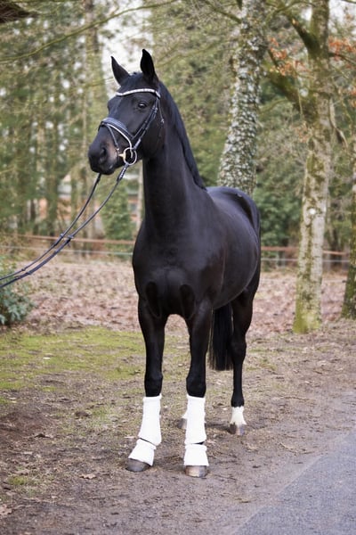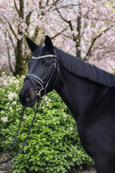 Bildschöne Rappstute - Dressurnachwuchs mit Top-Abstammung Total McLaren × Samarant × Figaro Zum Verkauf steht, direkt vom Züchter, eine 4-jährige Stute (ca. 1,70 m) in besonders ansprechender Aufmachung – ein bildschöner, lackschwarzer Rappe mit viel Ausdruck und Ausstrahlung. Die junge Stute überzeugt mit drei sehr guten Grundgangarten, viel Takt und Elastizität sowie einer natürlichen Bergauftendenz. Sie bringt beste Voraussetzungen für eine weitere Förderung im Dressursport mit. Im Umgang zeigt sie sich sehr menschenbezogen, verschmust und unkompliziert. Sie ist freundlich, aufmerksam und angenehm zu arbeiten. Ausbildungsgemäß ist sie solide anlongiert und kennt bereits Reitergewicht, zeigt sich dabei brav und lernwillig. Eine ideale Nachwuchsstute für Reiter, die sich ein talentiertes junges Pferd selbst weiter ausbilden möchten. Eine typvolle, bewegungsstarke Nachwuchsstute mit viel Potenzial für Sport und Freizeit. Für Schnellentschlossene noch zum Selbstausbilderpreis. Der Preis steigt bei weiterer Ausbildung. Ein guter TÜV liegt vor. Mehr Informationen gerne auch telefonisch unter +49 173 7359633.