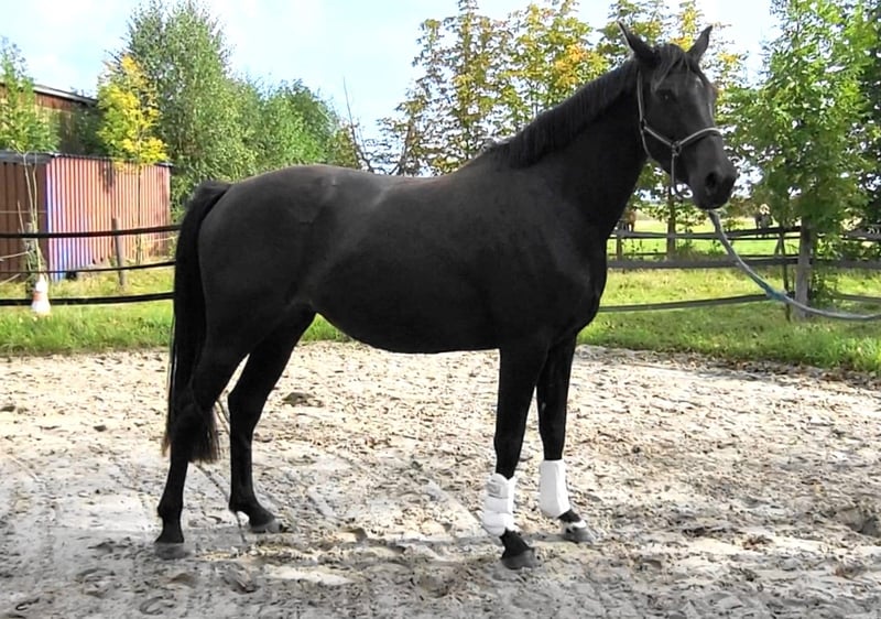 Wir haben eine rohe dreijährige Stute (geb. am 01.06.2022) aus eigener Zucht zu verkaufen. Sie ist schwarzbraun, misst zur Zeit ca. 1,70 und stammt ab vom Goldberg. Die Stute hat drei ausdrucksstarke Grundgangarten und viel Schub aus der Hinterhand. Sie ist sehr umgänglich und menschenbezogen. Derzeit läuft sie auf Sommerweide. .Die Mutter - Staatsprämienstute On my way T (Stedinger/Cartusch)- hat eine tolle Leistungsprüfung absolviert und war bis zum Zuchteinsatz erfolgreich im Sport: Reitpferdeprüfungen gewonnen und hoch platziert, Dressurpferde-A platziert. Aus dem Stamm kommen u.a. die Grand Prix-Pferde: Falcao OLD (Victoria Max-Theurer)und Lamarc WRT (Sabine Becker), sowie der gekörte Hengst For Edition (HLP-Sieger)
