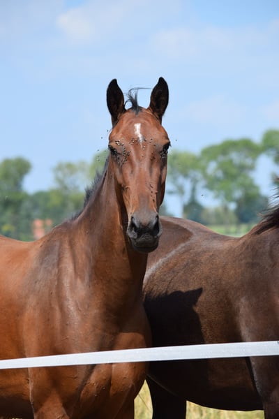 Deze expressieve 3-jarige merrie van Diamond First overtuigt met een geweldig karakter en uitstekende gangen. Haar moeder is een raszuivere volbloed merrie (Achal-Tekkiner). De Achal-Tekkiner is een van de oudste paardenrassen. Ze worden beschouwd als zeer robuust en duurzaam. Ze zijn zeer geschikt voor endurance en eventing. De moederlijn heeft ook zeer goede gangen en met de combinatie van Diamond First heeft First Light de beste voorwaarden voor een succesvolle toekomst. Ze kent de stapmolen, vrijspringen, trailer rijden en hoefsmid al, maar is nog rauw. We zijn van plan om in de winter met haar te gaan trainen. Ze is momenteel ongeveer 1.56 m Ze kan altijd bekeken worden.