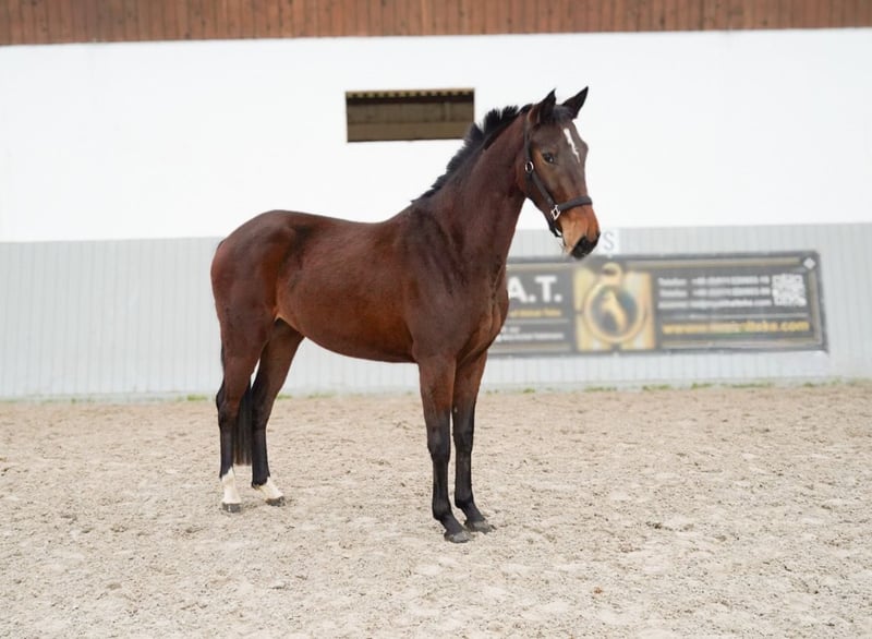 This expressive 3 year old mare by Diamond First convinces with a great character and excellent gaits. Her dam is a purebred thoroughbred mare (Achal-Tekkiner). The Achal-Tekkiner is one of the oldest horse breeds. They are considered to be very robust and enduring. They are well suited for endurance riding and eventing. The maternal side also has very good gaits and with the combination of Diamond First, First Light has the best prerequisites for a successful future. She already knows the horse walker, free jumping, trailer driving and farrier, but is still raw. We are planning to start training with her in winter. She is currently approx. 1.56 m She can be viewed at any time.