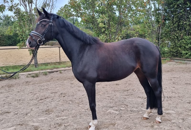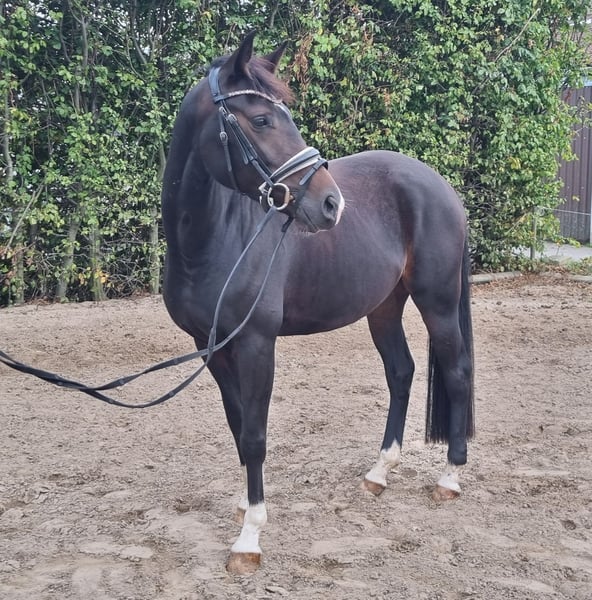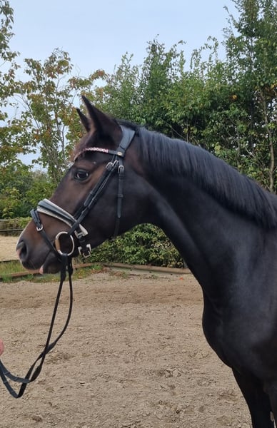 Wunderschöne Oldenburger Stute zu verkaufen Zum Verkauf steht eine talentierte Oldenburger Stute, geboren im Jahr 2021. Sie präsentiert sich in einem eleganten braunen Kleid und hat ein Stockmaß von 163 cm. Diese Stute zeigt großes Potenzial im Dressursport und ist sowohl für erfahrene Reiter als auch für ambitionierte Freizeitreiter geeignet. Ihr freundliches Wesen und ihre Lernbereitschaft machen sie zu einer idealen Partnerin. Mit ihrer positiven Einstellung und ihrem ansprechenden Bewegungsablauf wird sie sicherlich schnell das Herz ihres neuen Besitzers erobern. Sie steht bei uns im Sommer komplett draußen auf der Weide und im Winter nachts in der Box. Video auf Anfrage! Außerdem auch sehr interessant für die Zucht aufgrund erfolgreichem Mutterstamm. Die Schwester 7 j. ist auf dem Weg Richtung S Dr., die Mutter selbst war im Bundeskader, Deutsche Meisterschaft etc.. Wir wünschen uns ein schönes Zuhause wo sie im Mittelpunkt steht und noch weiterhin viel lernen darf.