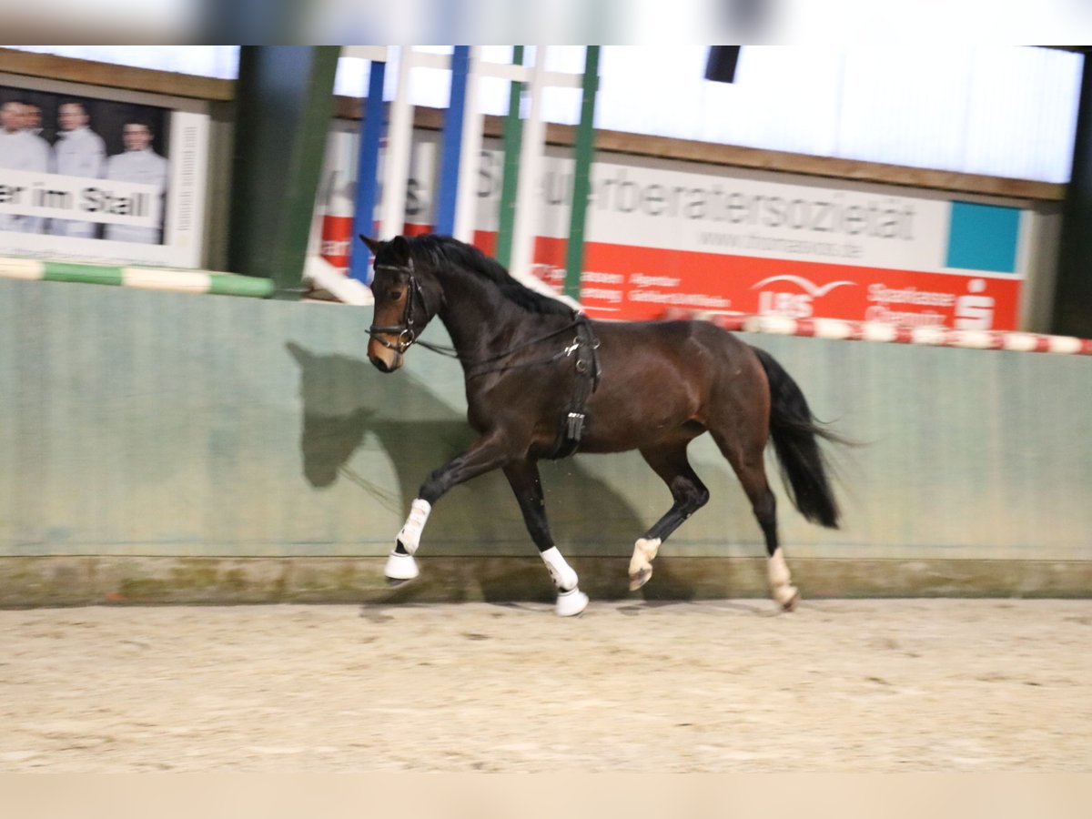Te koop vanwege fokkerijverplichtingen een prachtige 4-jarige dressuurmerrie. Ze heeft als veulen de Oldenburg Elite Award ontvangen, is daarna opgegroeid in een kudde en zeer goed gesocialiseerd. Ze is natuurlijk bekend met trailer en hoefsmid. Ze beschikt over drie echt goede basisgangen. Vooral haar zeer actieve achterbeen is opvallend, zodat de nieuwe eigenaar veel plezier kan beleven aan haar verdere opleiding. Ze heeft een "mensvriendelijk" karakter, is zeer attent en leergierig. Momenteel wordt ze net aangezet (stand 04/26). Uit de directe moederlijn (overgrootmoeder) komen meerdere Grand Prix-winnaars en Burgpokal-finalisten! De moeder is momenteel 9 jaar en succesvol in de M-dressuur, op weg naar S. Al met al een geweldig jong paard zonder echte zwakke punten.