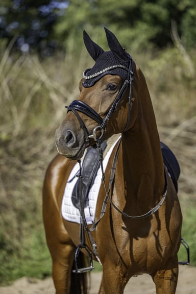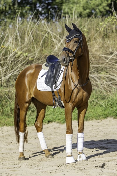 Zum Verkauf steht eine talentierte Oldenburger Stute, geboren im Jahr 2021. Diese elegante Fuchsstute besticht durch ihr ansprechendes Erscheinungsbild und ihr freundliches Wesen. Die Stute zeigt großes Potenzial im Dressursport und ist bereits in Reitpferdeprüfungen platziert. Ihre Bewegungen sind geschmeidig und ausdrucksstark, was sie zu einer vielversprechenden Partnerin für zukünftige Erfolge macht. Darüber hinaus hat sie ihre Dtutenleistungsprüfung als Oldenburger Husptprämienanwärterin beendet. Sie ist brav im Umgang, gut erzogen und hat einen einwandfreien Charakter. Diese Stute sucht ein liebevolles Zuhause, wo sie gefördert und gefordert wird. Bei Interesse oder weiteren Fragen stehe ich gerne zur Verfügung. Besichtigungen sind nach Absprache möglich. Ein guter TÜV aus März liegt vor! Lassen Sie sich diese Gelegenheit nicht entgehen und holen Sie sich diese talentierte Stute in Ihr Team!