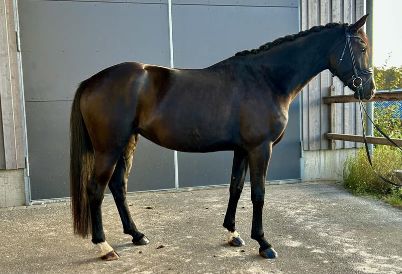 Deze 4-jarige merrie (ongeveer 168 cm) is afkomstig van Asgard's Ibiza x Sandro Hit en toont zich als een bijzonder aangename en betrouwbare partner in de dagelijkse training. Ze is makkelijk te rijden, gevoelig voor subtiele hulpen en geeft direct een zeer goed gevoel in het zadel. Met haar kwaliteit in de basisgangen, haar duidelijke ritme en haar natuurlijke bergopwaartse aanleg biedt ze uitstekende voorwaarden voor een succesvolle verdere dressuuropleiding. Wat vooral opvalt, is haar vriendelijke, coöperatieve en leergierige karakter. Ze werkt graag mee en ontwikkelt zich onder de ruiter dagelijks verder. Ze is ideaal voor ambitieuze ruiters die op zoek zijn naar een talentvol en prettig te rijden jong paard dat klaar is om samen de volgende stap te zetten. Een veelbelovend paard met toekomst — harmonieus, rijdig en met uitstraling. 📍 Locatie: 51570 Windeck 📞 +49 151 70006767 Dressuuropleiding Larissa