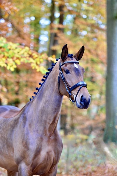 Córka Vitalisa, jak z katalogu: elegancka, o wspaniałym temperamencie i doskonałym chrapaniu, jest prawdziwą sercową łamaczką, którą od pierwszego spojrzenia się pokochuje. Charakterem bardzo przyjazna i otwarta na ludzi, chętnie wybiera się na teren i jest jeżdżona zarówno w hali, jak i na zewnątrz. Kto zna i kocha Vitalisa, z pewnością doceni tę klacz! Bezpośrednio od hodowcy, miała czas na rozwój i pochodzi z udanego rodu: wśród nich m.in. Flying Dance, odnoszący sukcesy na poziomie Inter II, czwarta na Bundeschampionate w wieku trzech lat, rekordzista aukcji Oldenburger Springauktion, a także w Top Ten w Mistrzostwach Świata Młodych Koni w dyscyplinie ujeżdżenia w wieku sześciu lat z Dorothee Schneider. Flying Dance odnosił sukcesy na międzynarodowych konkursach w małych turach w Hagen a.T.W., Akwizgran i Achleiten. Z rodu Duellmodell pochodzą również Mistrzyni Niemiec, klacz Weltwunder, matka Grand Prix-ojca Donnerschwee, a także liczne uznane ogiery, m.in. Rodomo, Richelshagen, Simply Virtual i Auheim’s Don Greg, oraz wielu sportowców. Velicia to wymarzona klacz dla ambitnych jeźdźców! Posiada cyfrowy certyfikat RTG. Lokalizacja: 27801 Dötlingen