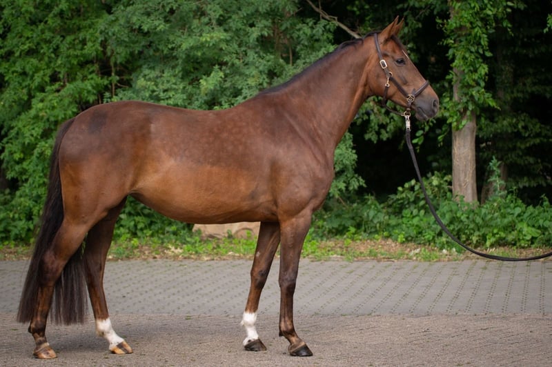 Ich suche für meine Mini ein neues, liebevolles Zuhause. Mini ist eine 6-jährige Stute (*24.01.2020) von Feinrich x Di Maggio x Don Gregory, ca. 1,62 m groß. Sie verfügt über drei gute GGA mit schönem Schwung durch den Körper und überzeugt besonders durch ihre Rittigkeit. Mini ist sehr fein an den Hilfen und möchte ihrem Reiter stets gefallen. Es macht einfach unglaublich viel Freude, sie zu reiten. Auch beim Freispringen zeigt sie sich durchaus talentiert. Aufgrund von Zeitmangel wurde Mini in den letzten Jahren nur phasenweise gearbeitet. Daher ist sie aktuell kein Anfängerpferd, sondern sucht einen Reiter mit Gefühl, Erfahrung und Freude an weiterer Ausbildung. Ende 2023 hatte Mini eine kleinere Gewebeveränderung im Fesselträgerschenkel hinten links, verursacht durch eine Verletzung im Stall. Sie war dabei zu keinem Zeitpunkt lahm. Nach entsprechender Pause ist die Verletzung vollständig ausgeheilt. Ich wünsche mir für Mini jemanden, der sie vielseitig beschäftigt. Sie hat große Freude an Bodenarbeit, geht gerne ins Gelände und bringt durch ihre interessante Abstammung auch Voraussetzungen für die private Zucht mit. Sie ist insgesamt ein feines, sensibles Pferd, das eine einfühlsame, aber konsequente Bezugsperson braucht. Mini kennt keine Boxenhaltung. Sie ist direkt nach der Aufzucht zu uns in den Offenstall gezogen und wurde entsprechend gehalten. Daher bitte nur anfragen, wenn Offenstallhaltung oder alternativ eine Box mit ganztägigem (!) Auslauf möglich ist. Ein aktueller TÜV liegt nicht vor. Mini ist mein erstes selbstgezogenes Pferd und unter besten Bedingungen groß geworden. Umso wichtiger ist es mir, für sie ein wirklich passendes Zuhause zu finden. Sie wird ausschließlich aufgrund der Aufgabe des Reitsports abgegeben und nur mit vertraglich geregeltem Vorkaufsrecht. Bei Interesse kann auch Equipment wie Sattel, Trense, Decken etc. mit übernommen werden. Videos gerne auf Anfrage.