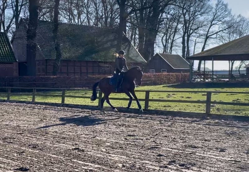 Diese charmante, blutgeprägte Stute begeistert mit ihrer Eleganz und besonderen Persönlichkeit. Sie vereint Energie und Sensibilität auf eine sehr angenehme Art und bringt dabei Qualität und Arbeitsfreude mit. Unter dem Sattel zeigt sie sich aufmerksam, lernwillig und motiviert. Sie möchte verstanden und fein geritten werden – bei fairer Anleitung entwickelt sie sich zu einer äußerst angenehmen und leistungsbereiten Partnerin. Ihre Einstellung und Rittigkeit machen sie besonders interessant für Reiter, die Freude an feiner Kommunikation und gemeinsamer Weiterentwicklung haben. Am meisten liebt sie eine abwechslungsreiches Training mit viel Outdoor-Aktivität. Sie macht einen guten Sprung und würde davon gerne mehr kennenlernen. Im Umgang ist sie intelligent, neugierig und sehr menschenbezogen. Hat sie Vertrauen gefasst, schenkt sie ihrem Menschen volle Aufmerksamkeit und Bindung. Eine besondere Stute mit Herz, Charme und Potenzial – für jemanden, der genau so ein Pferd zu schätzen weiß. Ihre Mutter ist selbst Elitestute und brachte bereits zwei S-Dressur erfolgreiche Nachkommen. Diese Stute ist bei uns geboren und im Herdenverband aufgewachsen. Sie wurde im letzten Jahr bei uns schonend angeritten und ist nun bereit sich mit seinem neuen Besitzer weiterzuentwickeln. Sie kann nach Absprache gerne jeder Zeit angeschaut und ausprobiert werden. Ein Video ist auf Anfrage verfügbar.