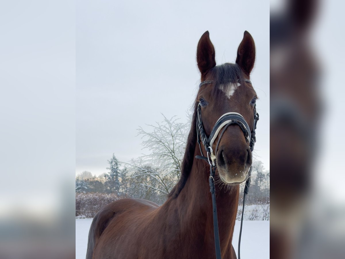 Zum Verkauf steht eine ausdrucksstarke 6-jährige Dunkelfuchsstute von Vitalis x Sir Donnerhall mit einem Stockmaß von ca. 1,68 cm. Eine charmante junge Dame, die mit Qualität, Charakter und einem ganz besonderen Wesen überzeugt. Die Stute ist dressurpferde A-fertig und zeigt sich dabei stets motiviert, lernwillig und sehr angenehm zu reiten. Sie überzeugt mit sehr guten Grundgangarten und viel Qualität unter dem Sattel. Ganz besonders hervorzuheben ist ihr außergewöhnlich liebes und menschenbezogenes Wesen: Sie ist eine absolut verschmuste, freundliche und ehrliche Stute, die im täglichen Umgang immer brav und unkompliziert ist. Ein Pferd, das man sofort ins Herz schließt. Ein guter TÜV liegt vor und kann selbstverständlich eingesehen werden. Fazit: Eine vielversprechende junge Dressurstute mit interessanter Abstammung, tollem Charakter und sehr guter Grundausbildung – ideal für ambitionierte Amateure oder zur weiteren Förderung im Dressursport. Weitere Informationen, Videos sowie ein Kennenlernen vor Ort gerne auf Anfrage. Der Verkauf erfolgt im Auftrag des Züchters. Für Besichtigungen, Probereiten und weitere Informationen steht die zuständige Bereiterin gerne zur Verfügung.