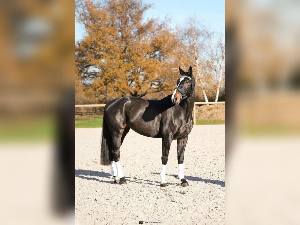This 5-year-old Oldenburg mare (turning 6 in 2026), standing approximately 17.2 hands, presents a fantastic opportunity for a rider looking to develop a modern dressage horse with plenty of scope, a good frame, and a commanding presence. Santa Rosa Monplaisir displays a harmonious build, balanced size, and three expressive, beautiful gaits. She stands out for her natural amplitude and balance, hinting at promising potential for further work on the flat. Currently, she is working on solid foundational exercises. She is beginning shoulder-in, has her head in a vertical position, works on counter-canter, and leg-yields. She has competed in Training Level 1 and Amateur 3B preparatory classes, demonstrating a serious and focused attitude in the ring. In daily handling, Santa Rosa is a gentle mare to prepare. She is comfortable being ridden alone outdoors, is not easily spooked, she clips easily, and loads into horse transport without difficulty. She has a refined contact profile, responding well to the leg, making her an interesting mare for an attentive rider wishing to refine her work and continue her training with respect. Thanks to her expressive gaits and elegant frame, Santa Rosa is suitable for an amateur rider under guidance or a professional rider aiming to bring an expressive mare to higher levels. An elegant mare with room for development and genuine potential for progression in dressage.