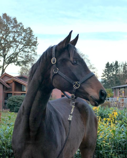 With Zypriana, there is an opportunity to acquire an outstanding Oldenburg breeding mare. At the age of four, she was able to complete her mare performance test under saddle with fantastic scores after a short period and was accepted for the elite show in Rastede. Carefully further trained, she was at a good Dressage Horse A level and was eventually sent to summer break pregnant by the Vice World Champion of the 5-year-old dressage horses 2024, Glamdale. Zypriana is tall, has a strong type, is long-legged, stands on correct foundations, and possesses outstanding movement dynamics. She conceived on the first insemination and is uncomplicated in the herd. Once she has foaled, she will meet all the requirements for the Oldenburg main premium. Her sire, Blue Hors Zackerey, was the main premium winner in Oldenburg and produces top horses continuously. The maternal line of Rudilore is famous for its successes in breeding and sport. The mare can be viewed at any time; please feel free to contact us!