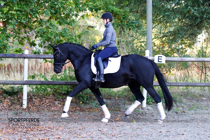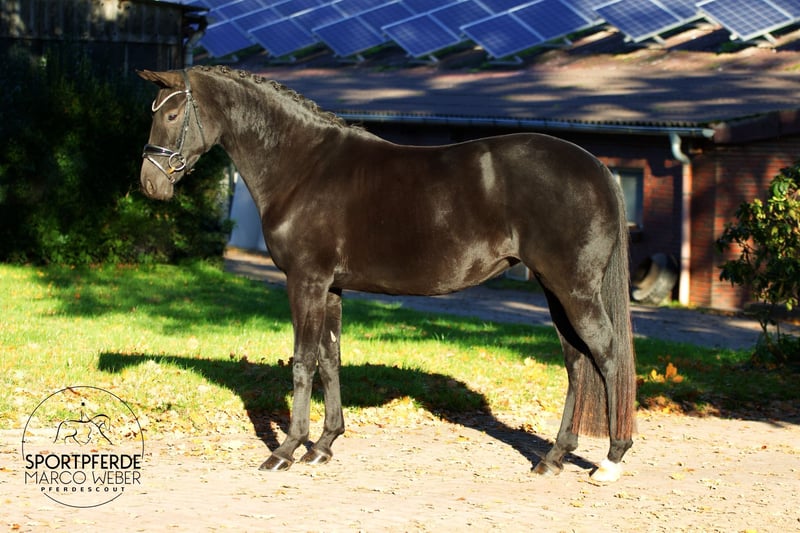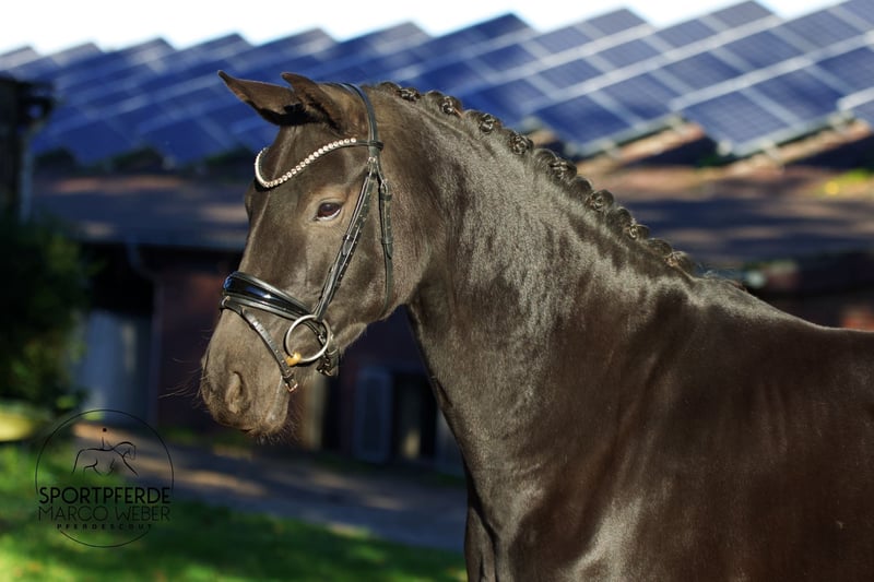 Oldenburger • Rappstute • *2019 • ca. 1,60 m ⚜️ Millennium – Sir Donnerhall – Fürst Wilhelm ⚜️ ✨ Charakterstark – qualitätsvoll – aus erstklassiger Abstammung ✨ Diese moderne und ausdrucksstarke Rappstute überzeugt durch hervorragendes Interieur, ein korrektes Fundament und eine sehr gute Arbeitseinstellung. Sie ist ein spätreifes, absolut unverbrauchtes Pferd mit klarer Perspektive für den Dressursport. Aufgrund eines Unfalls als 2-Jährige wurde sie zunächst nicht angeritten und verbrachte ihre Jungpferdezeit in artgerechter Aufzucht. Mit 3 Jahren wurde sie erstmals besamt und bekam 4-jährig ein gesundes Fohlen. Anschließend blieb sie weiter in der Aufzucht und wurde erst Anfang 6-jährig schonend und professionell angeritten. Sie entwickelt sich seitdem hervorragend und zeigt sich unter dem Sattel kooperativ, lernwillig und klar im Kopf. Sie entstammt einer leistungsstarken Oldenburger Erfolgszucht: Ihre Vollschwester wurde im Oldenburger Brillantring ausgezeichnet, ihr Vollbruder ist ein gekörter Prämienhengst – die Qualität dieser Mutterlinie ist eindrucksvoll abgesichert. ✅ Spät angeritten – unverbrauchter Körper ✅ Sehr gutes Interieur – leichtrittig und klar im Kopf ✅ Bereit für die weitere Förderung im Dressursport ✅ Bereits ein gesundes Fohlen – zuchtinteressant ✅ Aktueller, guter Röntgen-TÜV inkl. Rücken vorhanden ✅ Direkt vom Züchter 📍 Standort: Rastede 📞 Kontakt: +49 173 3013499