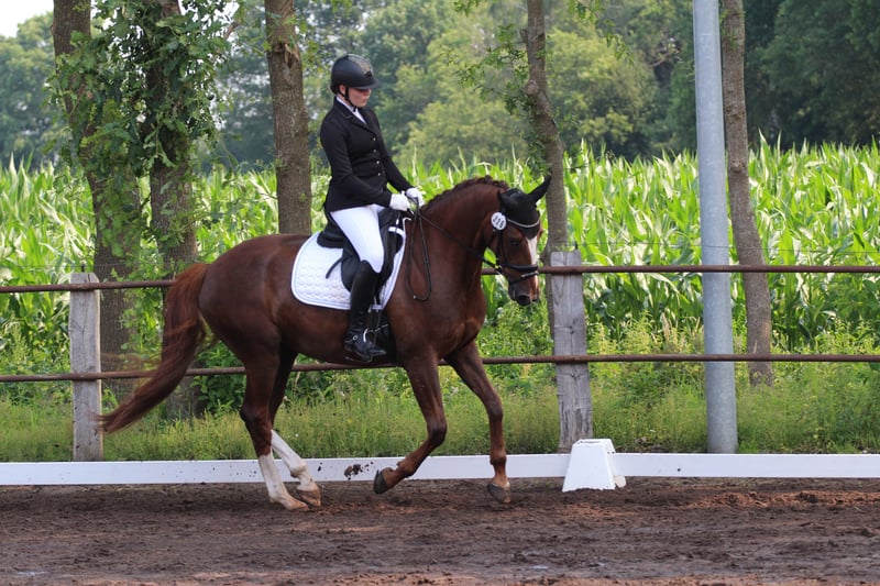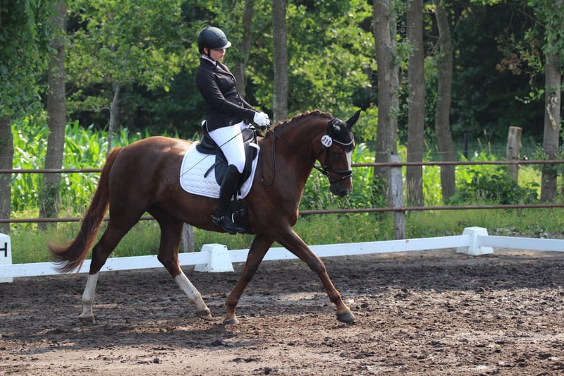 Wir verkaufen unsere Stute, die wir dreijährig direkt vom Züchter roh gekauft haben. Die Stute kannte damals noch nichts und wurde anschließend schonend eingeritten und weiter ausgebildet. Sie ist turniererfahren und zeigt sich dort genauso brav wie zu Hause. Man kann mit ihr problemlos alleine ausreiten. Sie ist doppelt veranlagt für Dressur und Springen. In der Dressur lässt sie sich fein und angenehm reiten. Im Umgang ist sie unkompliziert und menschenbezogen. Leider hatte sie eine Sehnenverletzung, die noch nicht vollständig ausgeheilt ist. Deshalb verkaufen wir sie deutlich unter Wert. Die Halbgeschwister unserer Stute sind züchterisch hoch erfolgreich und wurden bis zum Brillantring sowie als Staatsprämienstuten prämiert. Wir wünschen uns für sie einen Platz mit Geduld und Sachverstand, an dem man ihr die nötige Zeit gibt.