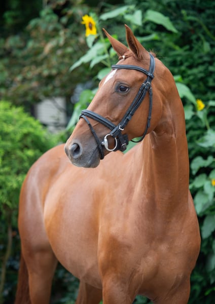 Donni is characterized by a loving nature. Her build is compact and well-proportioned. Her movements have a lot of rhythm and an active hind leg. Due to a lack of time, the mare has not been extensively trained yet, but her character shows that she is very willing to perform and easy to ride.