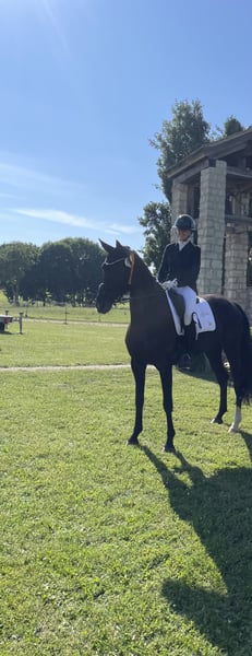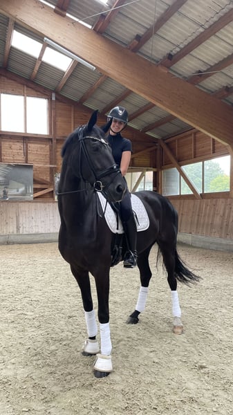 Dreamy and stylish Oldenburg mare – talented with great potential for the big arena! This elegant and long-legged mare (born 2018) impresses not only with her noble appearance but also with her exceptional movement potential. Standing at 175 cm at the withers and sporting a shiny black coat, "Lilli" is a real eye-catcher in any arena. "Lilli" has successfully competed multiple times in dressage tests at the M level and continues to show promising progress towards the advanced class, with potential for piaffe and passage. Under saddle, "Lilli" is always motivated, eager to learn, and carries herself with natural energy – responsive to aids and sensibly sensitive in a positive sense. In daily handling, she is a cuddly, human-oriented partner who loves to be in the spotlight. Her character makes her an ideal horse for an ambitious junior or young rider, or for a sport-oriented rider with experience and a gentle touch. We wish for "Lilli" to find a home with an experienced rider or under professional guidance, where she can continue to develop and showcase her qualities. X-rays from 2022 are available and can be viewed upon serious interest. For more information or to arrange a viewing, please contact us by phone, WhatsApp, or through the messaging function here. Thank you! Trial riding is possible at any time by appointment. Please note that a fee of €50 will be charged for trial rides, which will be deducted from the purchase price if a sale is made. 📍 Location: 85406