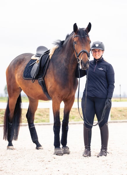 Sprzedam piękną klacz urodzoną w 2017 roku, po Millennium. Romy to koń o wyjątkowej prezencji, z niezwykłym urokiem i świetnym charakterem, który nie pozostawia nic do życzenia. Posiada trzy ponadprzeciętne podstawowe chody, w wieku 5 lat została oceniona na 8 w Dpf A i obecnie jeździ na poziomie M. Dodatkowo zna pracę na lonży, małe skoki oraz okazjonalne przejażdżki. Romy jest zawsze zmotywowana, delikatna w jeździe i codziennie wywołuje u swojego jeźdźca uśmiech na twarzy. Niestety, podczas jazdy boi się nadjeżdżających koni. Rozpoczęcie jazdy na placu do rozluźnienia lub w pełnej hali treningowej zimą zawsze wywołuje u niej stres. Dlatego szukamy dla niej pięknego domu na mniejszym ośrodku jeździeckim i oferujemy ją znacznie poniżej wartości rynkowej. To świetny koń szkoleniowy dla osoby, która chce głównie trenować w domu i czerpać codzienną radość z jazdy. Na pastwisku nie stanowi problemu obecność innych koni. Jest bardzo towarzyska i raczej zajmuje niższą pozycję w hierarchii. W spokojnej stadzie również możliwa byłaby stajnia otwarta. W obsłudze i podczas załadunku zawsze jest spokojna i nie sprawia trudności. Więcej informacji oraz film chętnie udostępnimy telefonicznie lub przez WhatsApp pod numerem 0160-91648238.