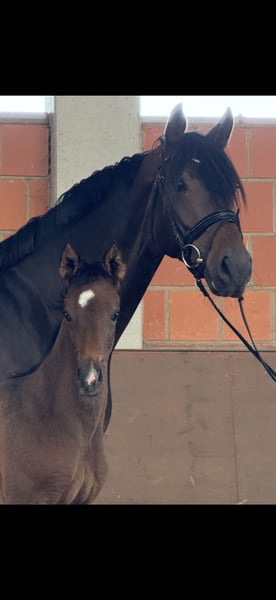 Impressive and movement-rich breeding mare available due to farm closure. She has produced very athletic foals so far (additional videos available via WhatsApp) and takes them up very well. Well-socialized, she is very easy to handle and gets along well with other mares, avoiding conflicts. The mare is currently pregnant by Mc Laren, due in May 2026. She can be re-bred after foaling and may be moved in the fall after weaning, or, upon request and for an additional fee, sold pregnant. Unfortunately, she has a defect, which is why she is offered at a favorable price to a good home! (Further details gladly provided in person) If interested, please feel free to call or message via WhatsApp at 0172-2942839.