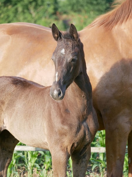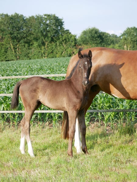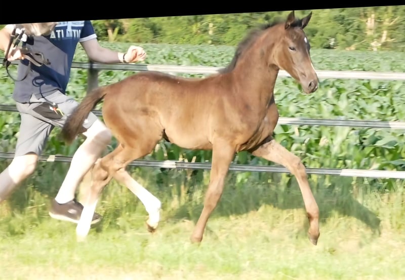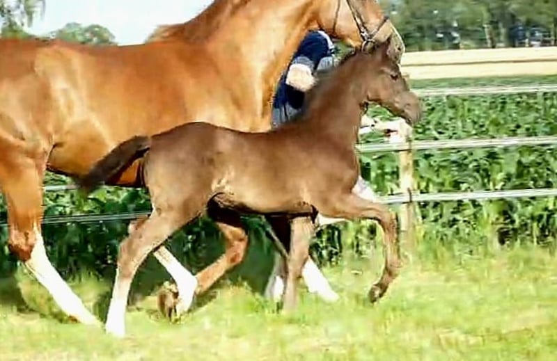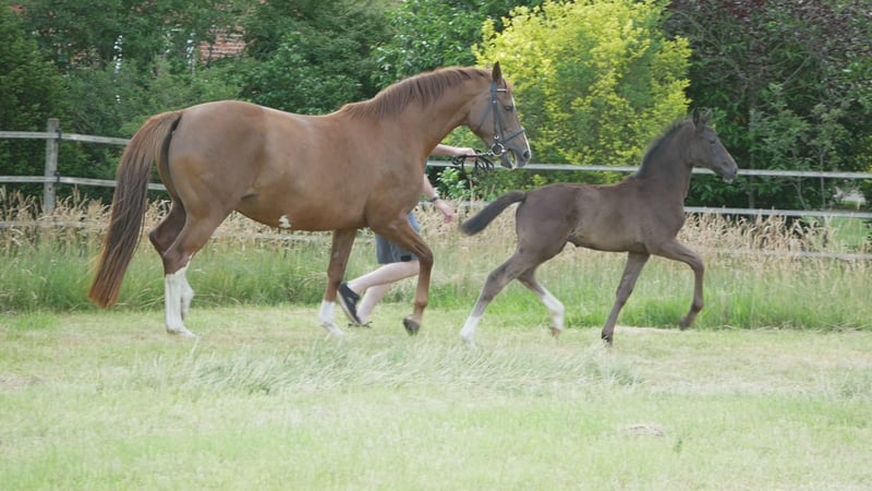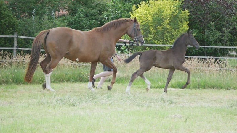 Super schicke Rappstute im tollen Modell und bestechend in Typ und Ausstrahlung. Die Tochter des Lindgren vom Landgestüt Celle präsentiert sich auch in den Grundgangarten von besonderer Qualität. Zudem ist sie dem Menschen vertrauensvoll zugewandt und ordentlich im Umgang. Vater Lindgren vom Le Formidable überzeugt mit seiner Arbeitseinstellung und Rittigkeit. Mutter OLHPr.St. Feldsternchen legte ihre SLP mit der Endnote 7,80 ab und war in einer Reitpferdeprüfung platziert. Sie war außerdem Teilnehmerin der Elitestutenschau in Rastede 2022. Leistungsorientiert aus dem Oldenburger Stutenstamm der „Feldgold“ – Linie gezogen. Direkter Mutterstamm des Laudate Dominum, Ferrari Girl, Sexy Back u.v.m. Die Mutterstute ist wieder tragend vom Barbarossa, von Bonds x For Romance für Ende März 2026 und steht ebenfalls zum Verkauf.