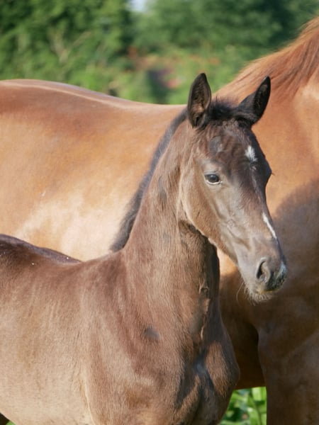 Especially well-proportioned and striking in type and presence. The daughter of Lindgren vom Landgestüt Celle also presents herself with exceptional quality in the basic gaits. In addition, she is trusting towards humans and well-mannered in handling. Father Lindgren vom Le Formidable impresses with his work ethic and rideability. Mother OLHPr.St. Feldsternchen completed her SLP with an overall score of 7.80 and was placed in a riding horse test. She also participated in the Elite Mare Show in Rastede 2022. Performance-oriented, bred from the Oldenburg mare line "Feldgold" – and a direct maternal line of Laudate Dominum. The mother mare is again in foal by Barbarossa, by Bonds x For Romance, and is also for sale.