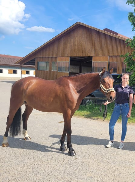 I am selling my 10-year-old gelding Rocketman. He measures approximately 1.55 meters at the withers, has a sturdy build, making him suitable for larger riders as well. Rocky is a very affectionate and cuddly horse. He is kept in a box with daily turnout to paddock or pasture, which I consider very important for his future home. He is very social with other horses and enjoys playing. In handling (grooming, tacking up, bridling), he is completely uncomplicated. Since I have no ambitions for competition, he has only been ridden recreationally over the past four years. His previous owners introduced him to rider competitions. He is trained up to A-level dressage and still has potential for further development with additional training. I have also participated in clinics for pole work. My riding partner has jumped him, which he thoroughly enjoys. He makes good jumps but needs a rider who can give him confidence and help him with proper distances. He is used to hacking alone and in groups. He adapts well to different riders but is not suitable for a riding school or dealer sale!! He is suitable for experienced adults and teenagers, but not a beginner’s horse. Rocky has been regularly dewormed and vaccinated. His teeth are checked every six months (no treatment needed), and he has received regular osteopathic/physiotherapeutic treatments. The saddles have also been regularly checked and adjusted. He is shod in front. During the summer, he is sensitive to flies around the head when riding, so I usually ride him outside with a nose net and fly mask. He is absolutely trailer-safe and stands calmly on the trailer. Price includes complete equipment, including a dressage saddle from Stübben and a jumping saddle from Passier.