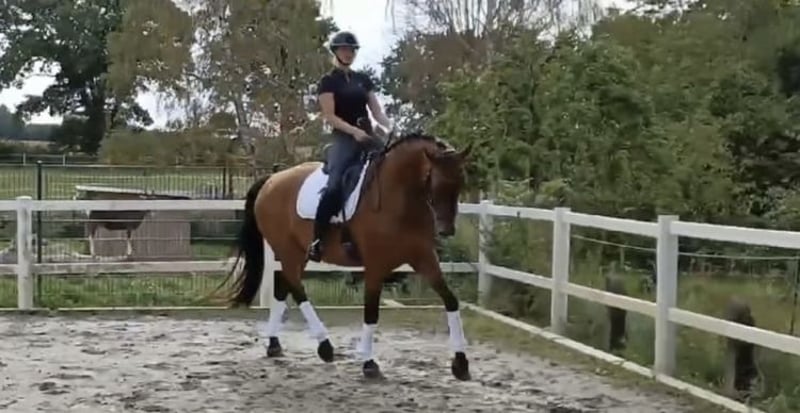 Vendo un impressionante stallone Oldenburger, nato nel 2015. Il suo elegante mantello baio conquista per la sua imponente altezza di 178 cm e la sua equitazione equilibrata, con una buona base di addestramento. Con il suo movimento potente e la sua affidabile qualità in dressage, è il partner ideale per cavalieri ambiziosi che apprezzano qualità e desiderio di performance. Un vero gioiello, che entusiasma sia per il suo aspetto nobile sia per le sue capacità versatili. È stato saltato solo poche volte, ma da quest’anno si allena regolarmente nel salto ostacoli. In dressage si trova su un buon livello di L, abbiamo iniziato con le L-Lektionen. Cerchiamo per Scampi una famiglia amorevole dove possa sentirsi a suo agio. È molto socievole e attualmente trascorre il giorno con altri cinque stalloni, all’aperto.