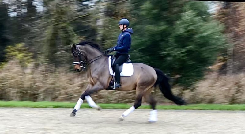Deze 14-jarige ruin heeft veel wedstrijdervaring tot Intermediaire 1. Huidige röntgenfoto's beschikbaar. Gedraagt zich braaf en is gemakkelijk te rijden. Eenvoudig te rijden aan bit en cavesson. Niet schrikachtig. Een top paard voor junioren of jonge ruiters. Eén wissel en halve passen mogelijk. Locatie: Bree, België. Voor meer informatie graag via WhatsApp of e-mail.