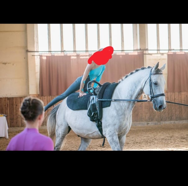 Il nostro Fasi (Fastoso) è semplicemente adorabile. Va bene con bambini, cani e gatti, niente problema. Tuttavia, non si diverte a fare dressage o volteggio, motivo per cui alla fine abbiamo deciso di cedergli. Ama andare in passeggiata in campagna ed è completamente addestrato anche per l'equitazione in campagna. È molto interessato anche al lavoro a terra. Desideriamo per lui persone che non abbiano ambizioni sportive, che cerchino un cavallo affidabile per le passeggiate in natura e che trovino divertente anche il lavoro a terra. Potremmo anche immaginare un impiego in terapia assistita con i cavalli o nel coaching. Preferiremmo una stalla all'aperto con un'area di riposo asciutta. In estate, preferibilmente, pascoli aperti 24/7 oppure almeno durante il giorno. Sarebbe ideale con un ambiente familiare, cosa che gli piacerebbe molto. Finora ha sempre vissuto in una scuderia con soli stalloni, ma non mostra alcun comportamento scorretto anche quando le femmine dall'altra parte della staccionata manifestano le loro intenzioni. Il carico e il ferratura non sono un problema. Inoltre, grazie alla sua esperienza in tornei di volteggio, è abituato a molto trambusto, stimoli visivi e acustici, e di conseguenza è piuttosto insensibile a questi, rimanendo comunque un cavallo. Anche senza compagnia equina, può partecipare a matrimoni o eventi (vedi foto).