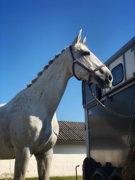 Nuestro Fasi (Fastoso) es simplemente muy adorable. No tiene problema con niños, perros o gatos. Sin embargo, no disfruta de la doma o del volteo, por lo que finalmente hemos decidido entregarlo. Le encanta salir a campo y es totalmente apto para ello. También le entusiasma el trabajo en el suelo. Buscamos para él personas que no tengan aspiraciones deportivas, que busquen un caballo fiable para el campo y que disfruten mucho del trabajo en el suelo. También podemos imaginarlo en terapias asistidas con caballos o en coaching. Además, preferiríamos una caballeriza en paddock con un área seca para descansar. En verano, también nos gustaría que pase todo el día en la pradera o al menos durante el día. Sería ideal que tenga contacto familiar, eso le encantaría. Hasta ahora, siempre ha estado en una manada de caballos castrados, pero no muestra ningún comportamiento indeseado incluso cuando las yeguas en la otra cerca le muestran sus intenciones. No hay problema para cargarlo en el remolque ni para el herrador. Además, debido a su experiencia en concursos de volteo, está acostumbrado a mucho movimiento y a estímulos visuales y sonoros, y no se deja impresionar fácilmente, aunque sigue siendo un caballo. Incluso sin compañía equina, para asistir a la boda de la dueña de la yegua, no hay problema (ver foto).