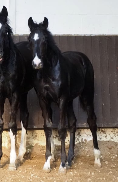 Magnifiquement dessiné, ce jeune étalon multicolore et incroyablement typé est, par son ascendance, doté d'une grande mobilité et d'un tempérament polyvalent. Son père Cafe au lait, étalon vainqueur de son approbation, vainqueur de la HLP et finaliste du BuCha, a lui-même remporté des victoires dans les classes difficiles et s'est fait un nom ces dernières années en tant que double géniteur avec une descendance de pointe. Ainsi, "Cafe's Casimir" (Cafe au lait x Calido x Grannus) est devenu la tête de liste des prix de la vente aux enchères d'élite du Oldenbourg, il est déjà vainqueur en série dans des épreuves de dressage de niveau S et a remporté des victoires internationales en Intermédiaire I dès son plus jeune âge. La jument Cafe's Caletta (Cafe au lait x Calato) de Kasselmann s'est également classée en dressage de niveau S et a remporté des victoires internationales en Grand Prix. Cafe's Matts (Cafe au lait x Don Frederico) a été le deuxième cheval de dressage le plus cher de l'Oldenburger Summer Mixed Sales. D'autres jeunes chevaux issus de juments maternelles axées sur le saut d'obstacles se sont déjà classés à plusieurs reprises dans des épreuves de dressage de A à M et sont remarquables par leurs mouvements et leur clarté de tête. Il ne fait aucun doute que les descendants de Cafe au lait sont convaincants en saut d'obstacles jusqu'au niveau difficile, comme par exemple dans notre élevage : Cafe's Champus : approuvé, vice-champion du monde des jeunes chevaux Cafe Junior : approuvé, succès international en Arabie Saoudite Cafe's Columbo : approuvé et couronné de succès dans le sport en France Cafe's Don Rubin : approuvé, médaille de bronze à 4 ans comme plus jeune cheval au championnat de Dobrocker Deister Stationné chez Paul Schockemöhle, Cafe au lait a déjà engendré de nombreux chevaux de saut d'obstacles au succès international, notamment "Royce", vainqueur du FEI CSI5* $500,000 Rolex Grand Prix Wellington. Cafe au lait lui-même a été finaliste du Bundeschampionat sous la selle de Philipp Weishaupt et a connu le succès jusqu'au niveau S***, mais il est également doté de trois GGA spectaculaires et a été formé au niveau S en dressage. Nos poulains reçoivent quotidiennement de l'aliment minéral et du Fohlenstarter, régulièrement de l'EQUISTRO Haemolytan et de l'Ipaligo Foal, des vermifuges et un forgeron sont bien entendu également fournis. Les mères reçoivent également un aliment spécial pour juments pendant toute la gestation, de la nourriture quotidienne au jus et de l'huile de lin, ainsi que du foin ad libitum. Ainsi, notre progéniture est toujours en excellente santé. D'autres poulains et jeunes chevaux issus de notre propre élevage sont disponibles sur demande. Il y a également toujours quelques juments poulinières portantes à vendre. Les demandes de vidéos, etc. ne sont possibles qu'à l'avance via WhatsApp !