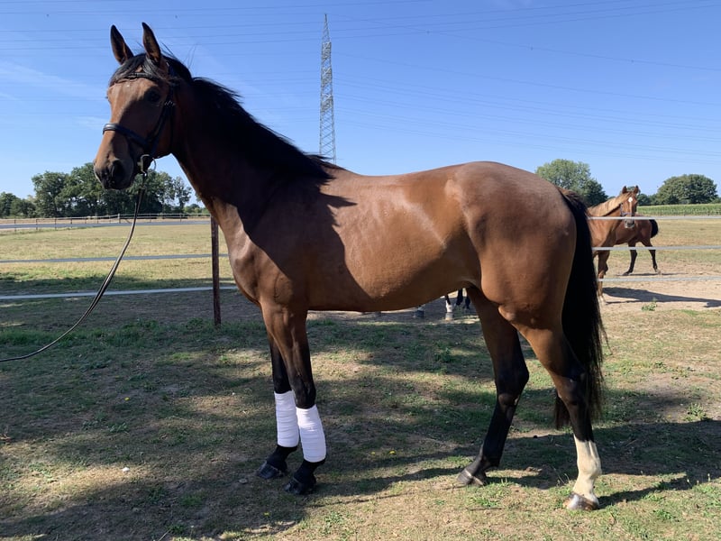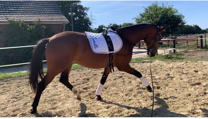 For sale is a promising Oldenburg gelding, born in 2022 directly from the breeder. He has grown up in a herd with peers and has had daily contact with people, making him very people-oriented. This talented gelding shows great potential in dressage and is ready to further develop. He impresses with his movements and willingness to learn. He is well-mannered, easy to handle, and always shows cooperation. Ideal for ambitious riders looking for a reliable partner for the future, whether in dressage or as a leisure companion. His mother also shows enjoyment in jumping. He is currently being gently backed. The first rounds at the walk are already possible with a rider. The price will increase with further training. If you are interested or have any questions, please feel free to contact me. Visit us and see for yourself this wonderful horse!