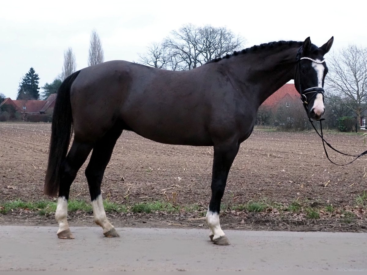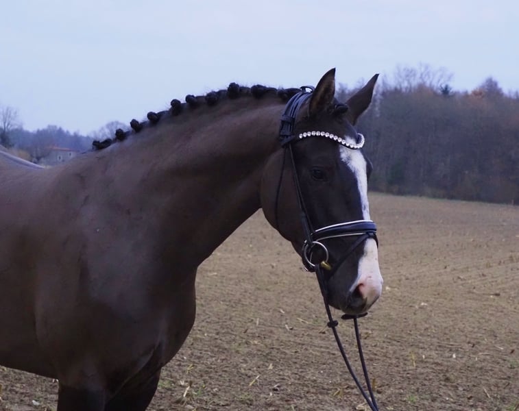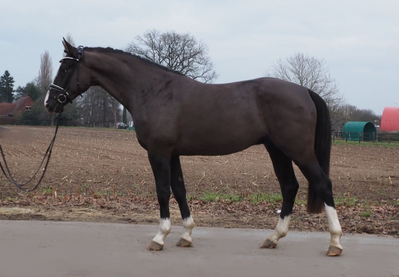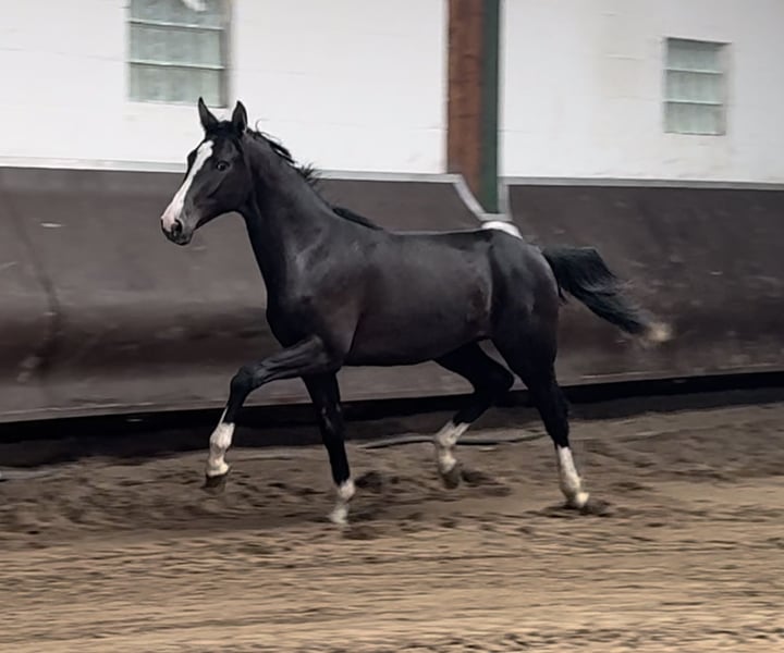 It doesn't get any better than this! Chocolate brown stallion candidate as painted! 4x white with blaze, he already attracts everyone's attention with his appearance. Here a very special, double-predisposed young horse matures. His dam (Bretton Woods x Zeus) has even been placed several times in young horse competitions, jumping and cross-country and is extraordinarily strong in movement. Descended from our licensing winner and HLP winner "Cafe au lait", who has been attracting attention for quite some time with his incredibly successful offspring in dressage and show jumping (can also be visited on site). One of the few sires, who can boast several successful offspring in both disciplines up to the advanced class! This is how Cafe's Casimir" (Cafe au lait x Calido x Grannus) became the celebrated top prize of the Oldenburg Elite Auction, is already a serial winner in dressage horses M at a young age, and at the age of 7 he is again a serial winner in his first S dressage! Meanwhile, he is victorious in international Intermediaire I. Mare Kasselmanns Cafe's Caletta (Cafe au lait x Calato) is already S** dressage and international Grand Prix victorious. Cafe's Matts (Cafe au lait x Don Frederico) became the second most expensive dressage horse of the Oldenburg Summer Mixed Sales. Other young horses from jumping dam mares have already placed several times in dressage horse tests A to M and are remarkably strong in movement and clear as head. There is no question that the café au lait is convincing offspring in show jumping up to the advanced class. Thus, the licensed Cafe's Champus under Rene Tebbel became Vice World Champion of Young Horses. Also licensed and from our breeding: Cafe Junior (Cafe au lait x Silvio I), placed internationally S*-jumping. Cafe au lait himself was a finalist in the National Championships under Philipp Weishaupt and has been successful up to S*** jumping, but has also been equipped with three spectacular GGA and has been trained dressage at S level. Stationed with Paul Schockemöhle, he has already fathered several internationally successful show jumpers, including "Royce" (Cafe au lait x Grandilot), victorious in the FEI CSI5* $500,000 Rolex Grand Prix Wellington. Our foals receive daily mineral feed and foal starters, regular EQUISTRO Haemolytan and Ipaligo Foal, worming and blacksmithing are of course also a matter of course. The mothers also receive special mare feed, juice feed, linseed oil and hay ad libitum throughout the pregnancy. So our broodmares and their offspring are always well cared for and in top condition! Other foals and young horses from our own breeding on request. Some of them can be found among the other ads. We have around 20 café au lait foals every year. There are also always some pregnant broodmares for sale. (Video) Inquiries can only be made via WhatsApp.
