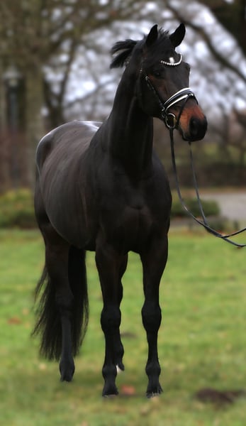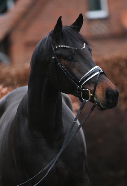 On behalf of the breeder, a striking, well-ridden young gelding in a dark coat is offered for sale. "Fast and Furious" has already achieved top placings in young horse classes and shows great potential as a championship prospect for 2026. He is very hardworking and motivated, fulfilling all tasks with ease, and is a pleasure to sit and ride, with very pleasant contact. His three expressive basic gaits and excellent attitude set him apart. The gelding comfortably goes out to the paddock every day, is familiar with the lunging circle, outdoor arena, and trail riding. An absolute recommendation for the ambitious sport rider! Already well-trained, he has no trouble with dressage tests A in early spring. A current veterinary certificate is available. Come see him and fall in love!