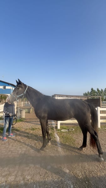 Sire: Bellany (Dressage Champion) https://youtu.be/d8hHcMx13Qk?is=89m2V3Noeg4FF5fn He will be 3 years old in June. Height: 170 cm currently (he’s still growing) Color: most likely grey High-quality dressage prospect with a nice temperament. Very kind and willing to work. Well-behaved on the ground. Exceptional, forward movements with great potential for the upper levels.